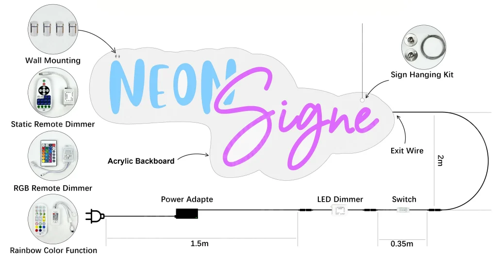 Neon signs are traditional illuminated signs made from glass tubes filled with gas. When electrified, they produce a glowing light effect that is often associated with vintage or decorative styles.