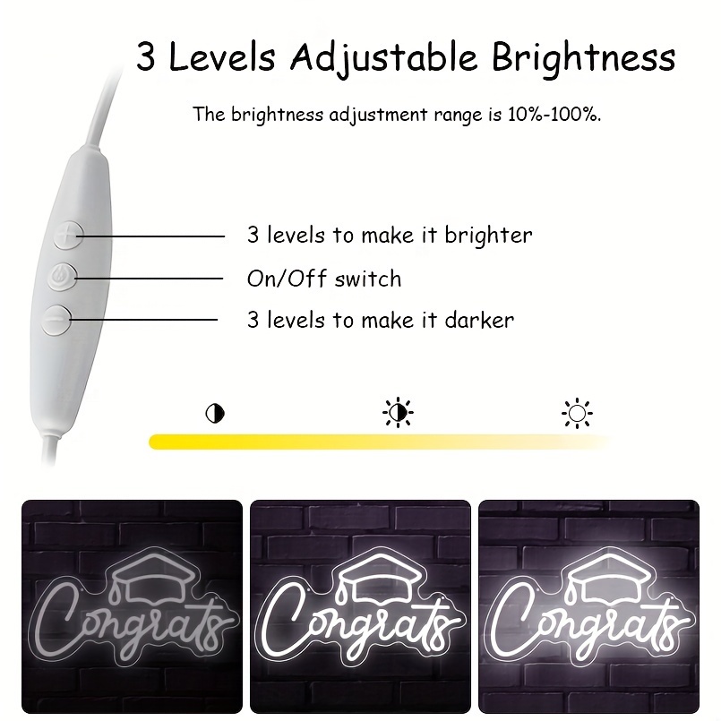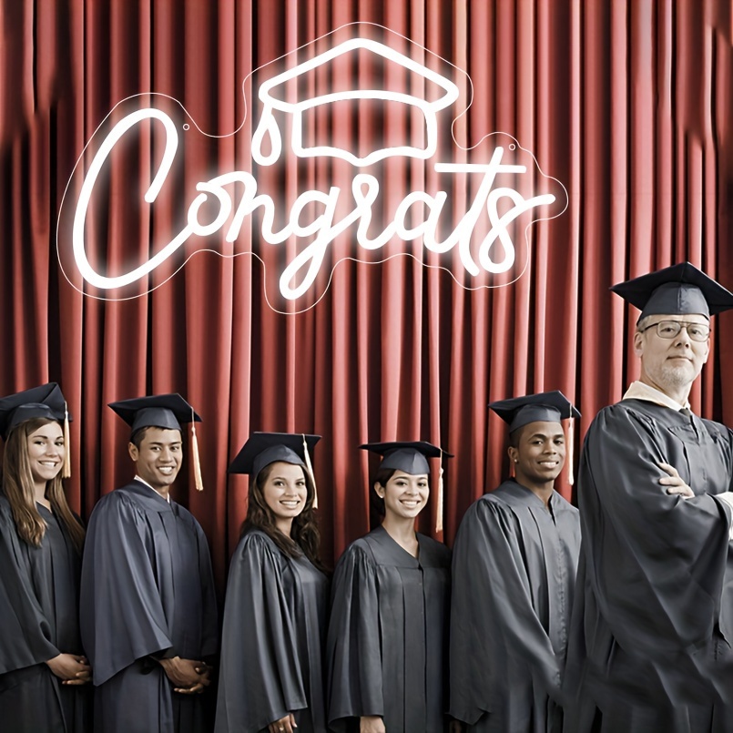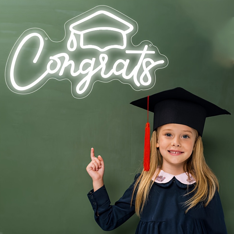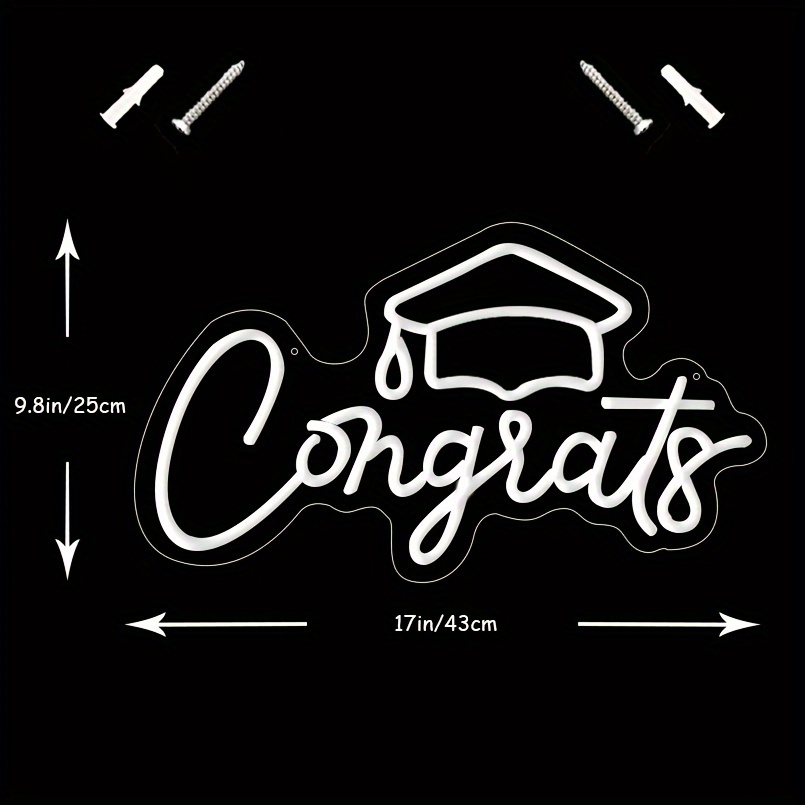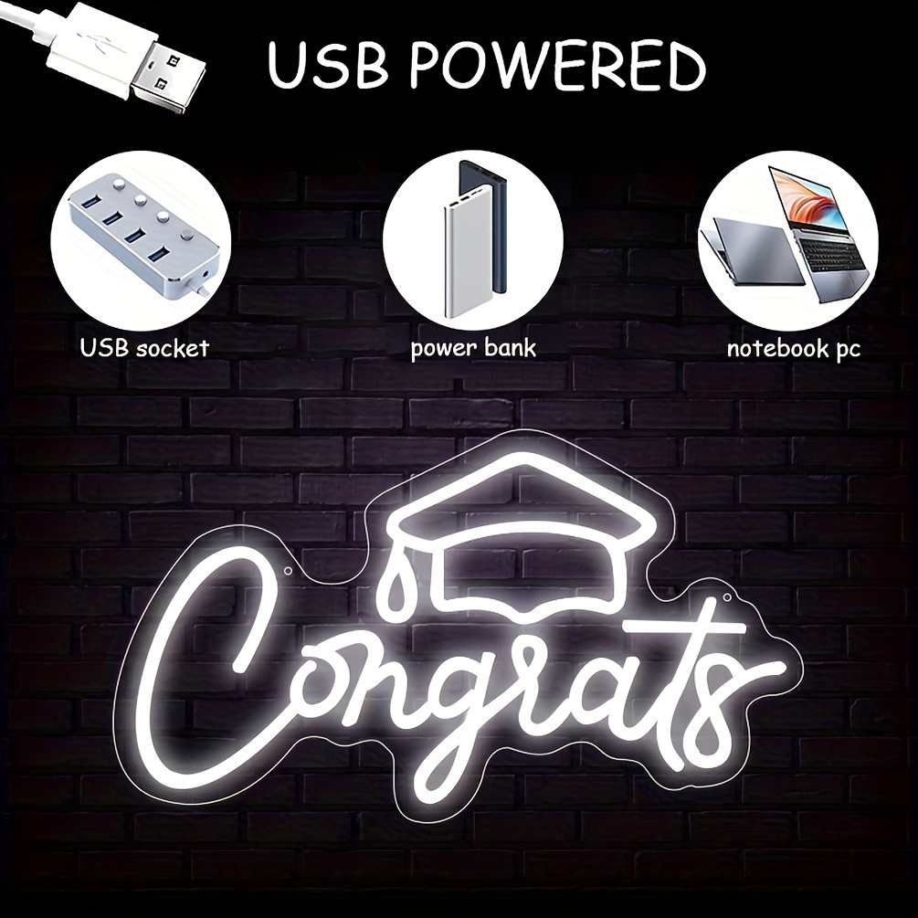 1 pc Congrats Grad LED Neon Sign, Graduation Ambience Wall Decoration Neon Sign for Graduation Party, Graduation Ceremony, Office, Game Room, Restaurant, Family, Club, Living Room, Bar, Bedroom and Home Wall Decoration, Preferred as Birthday and Holiday Gift for Friends and Family, USB Powered Illuminated Sign Hanging Unit, 5V USB Power Supply