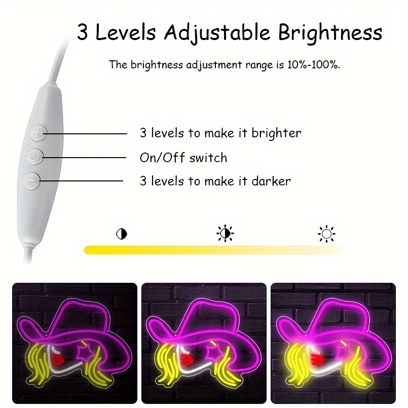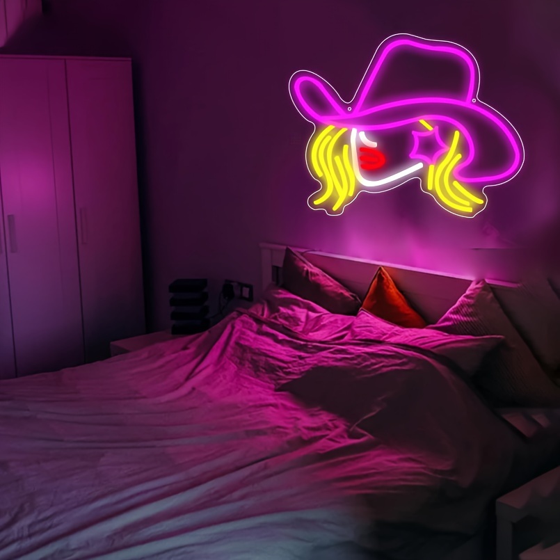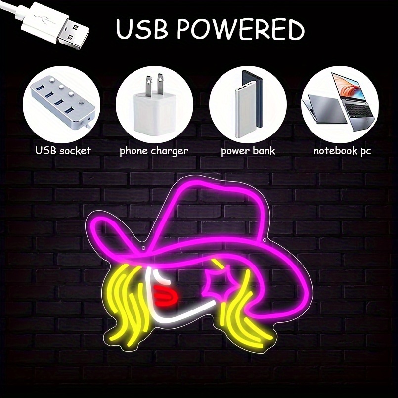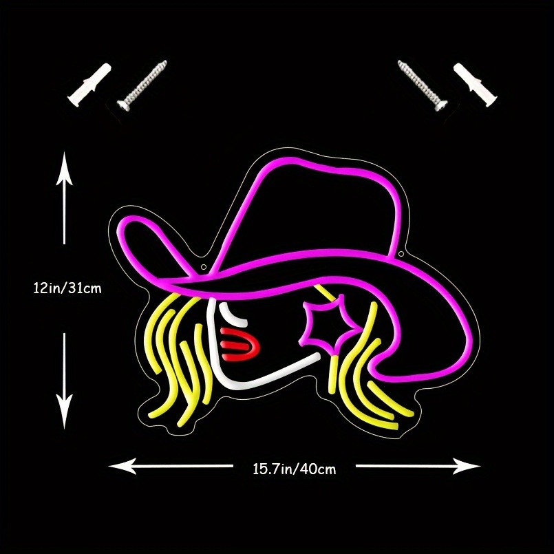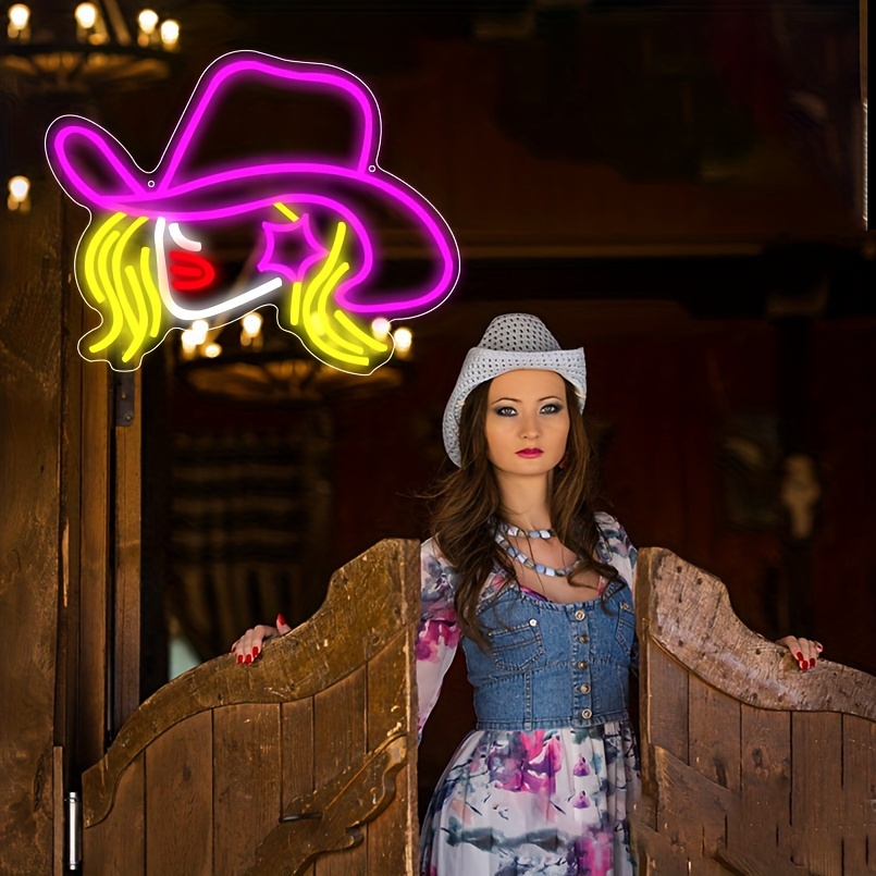 1 pc Cowgirl Hat LED Neon Sign, Western Cowboy Ambiance Wall Decoration Neon Sign for Western Cowboy Themed Parties, Offices, Game Rooms, Families, Clubs, Living Rooms, Bars, Bedrooms, and Home Wall Decorations, Preferred for Friends and Family’s Birthdays and Holiday Gifts, USB Powered Illuminated Sign Hanging Unit, 5V USB Power Supply