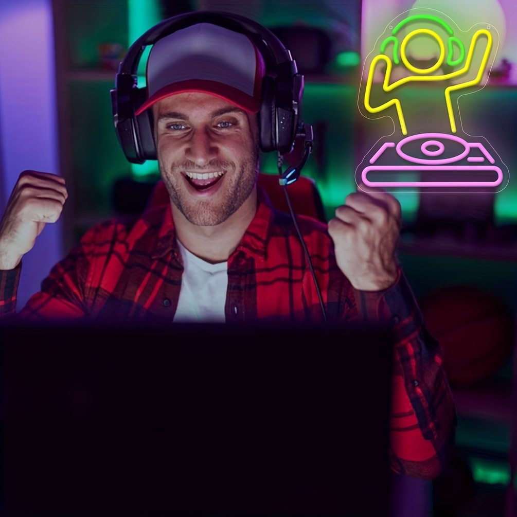 1 pc DJ player neon LED sign, Men’s cave neon sign for bars, Cute anime dimmable LED neon lights, great for parties, bedrooms, bars, shops, rooms, friends party wall decorations, USB powered illuminated sign hanging device, 5V USB power supply
