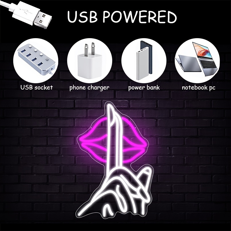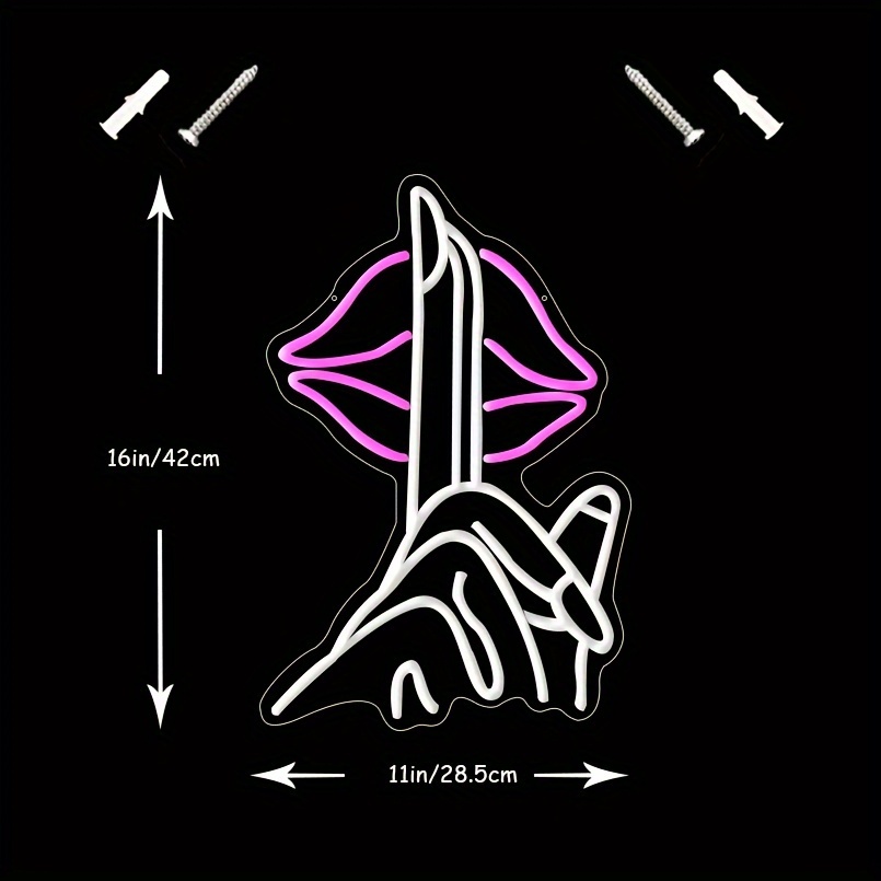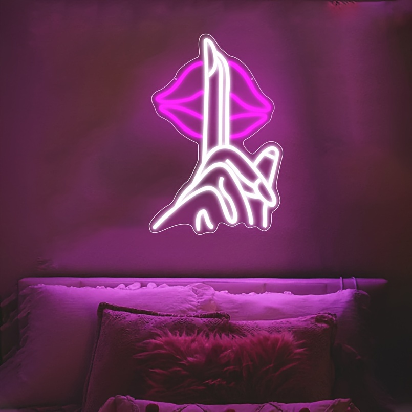 1 pc Finger Gesture Lips LED Neon Sign, Ambient Wall Decoration Neon Sign for Party, Office, Coffee Shop, Game Room, Home, Club, Living Room, Bar, Bedroom and Home Wall Decoration, Preferred as Birthday and Holiday Gift for Friends and Family, USB Powered Illuminated Sign Hanging Unit, 5V USB Power Supply