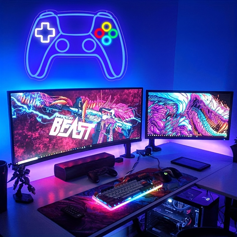 1 pc Gamer LED Neon Sign, Ambient Wall Decoration Neon Sign for Pet Shop, Video Game Theme Party, Game Room, Family, Living Room, Bar, Club, Bedroom and Home Wall Decoration, Preferred as Birthday and Holiday Gift for Friend’s Family, USB Powered Illuminated Sign Hanging Unit, 5V USB Power Supply