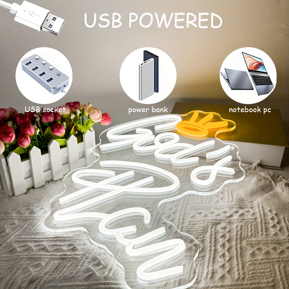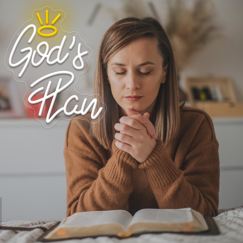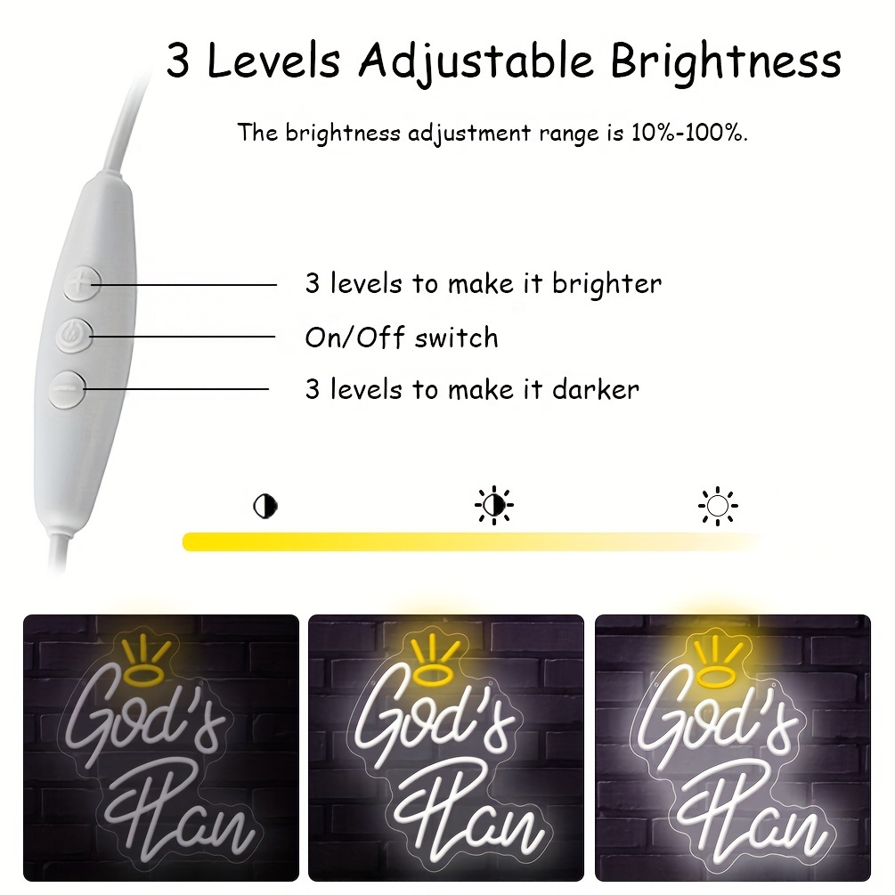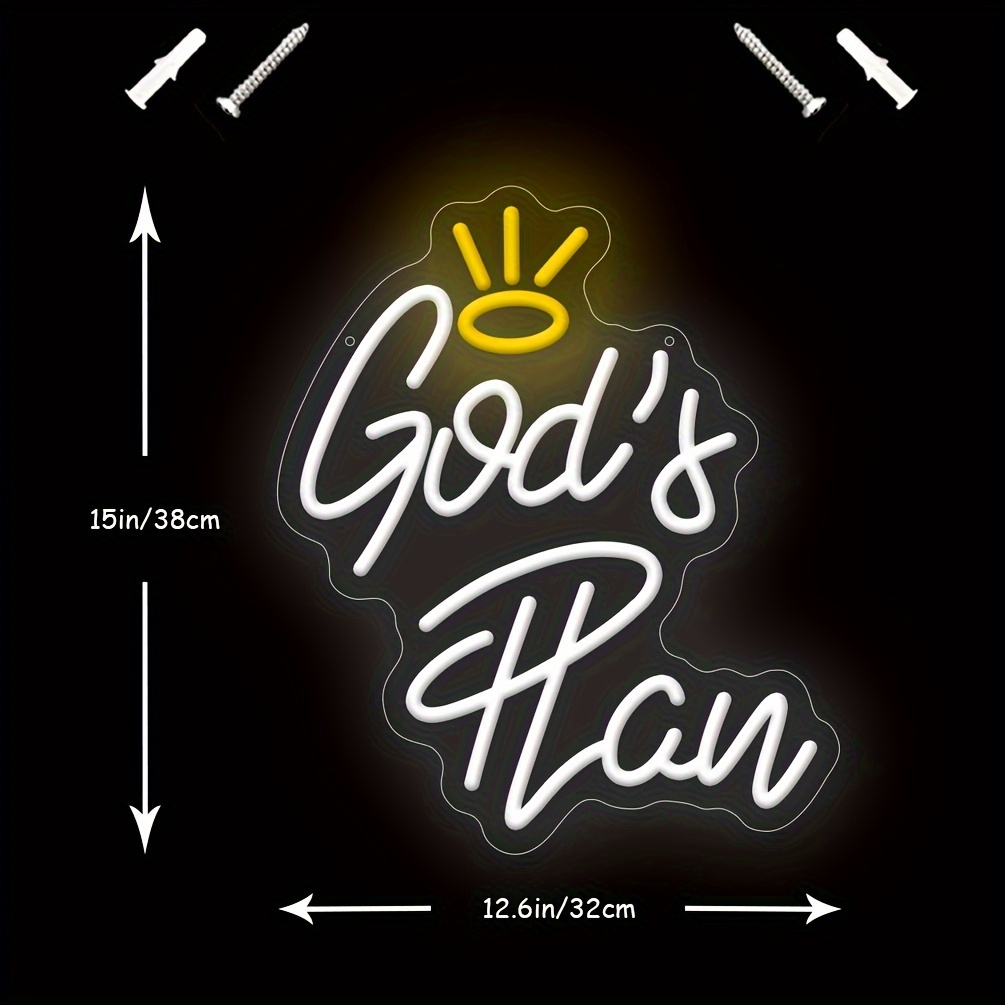 1 pc God’s Plan Neon LED Sign, Wall Decoration White Letter Neon Sign, Great for parties, bedrooms, bars, shops, rooms, friends gatherings wall decorations, USB Powered Illuminated Sign Hanging Unit, Wall Mounted LED Lights, 5V USB Power Supply