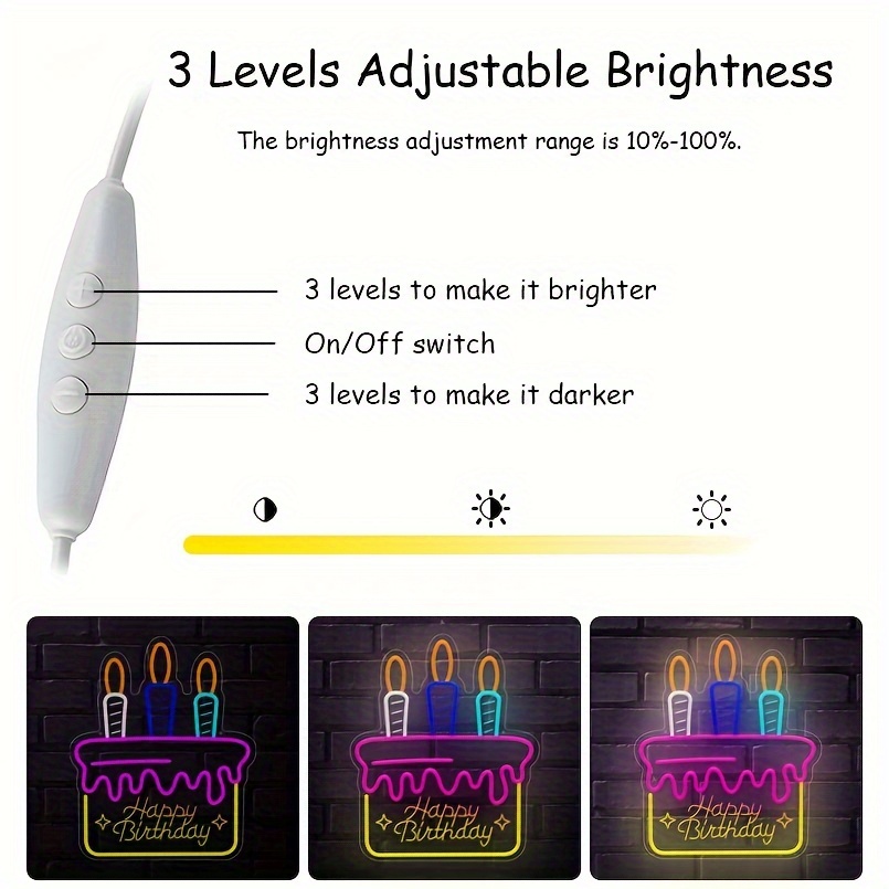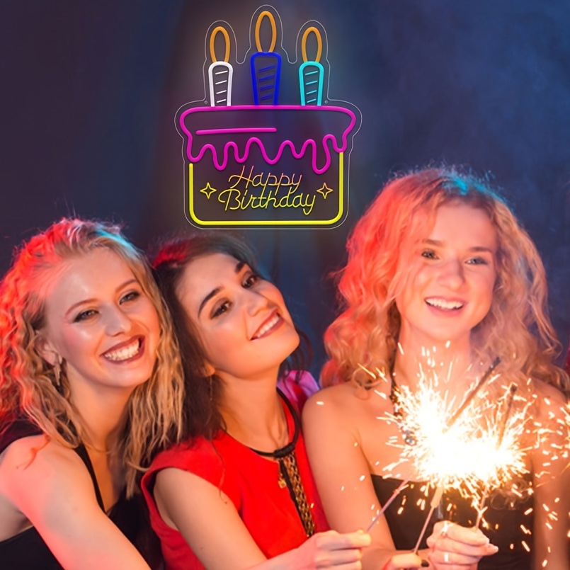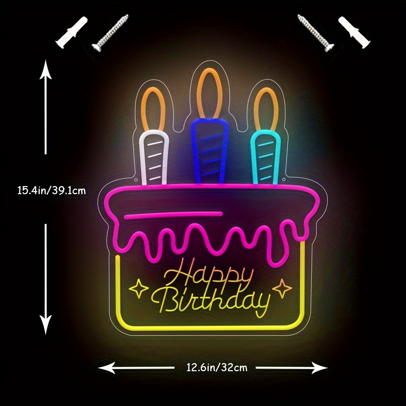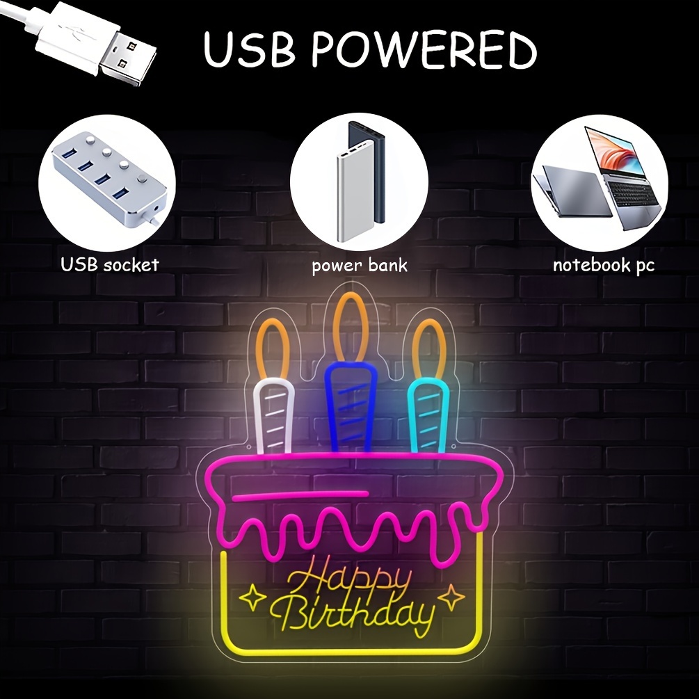 1 pc Happy Birthday cake shape LED neon sign, 3D engraving, ambient wall decoration neon sign for birthday party, cake shop, family living room, bedroom and home wall decorations, as friends and family birthday, holiday gift preferred, USB powered light up sign hanging device, 5V USB power supply