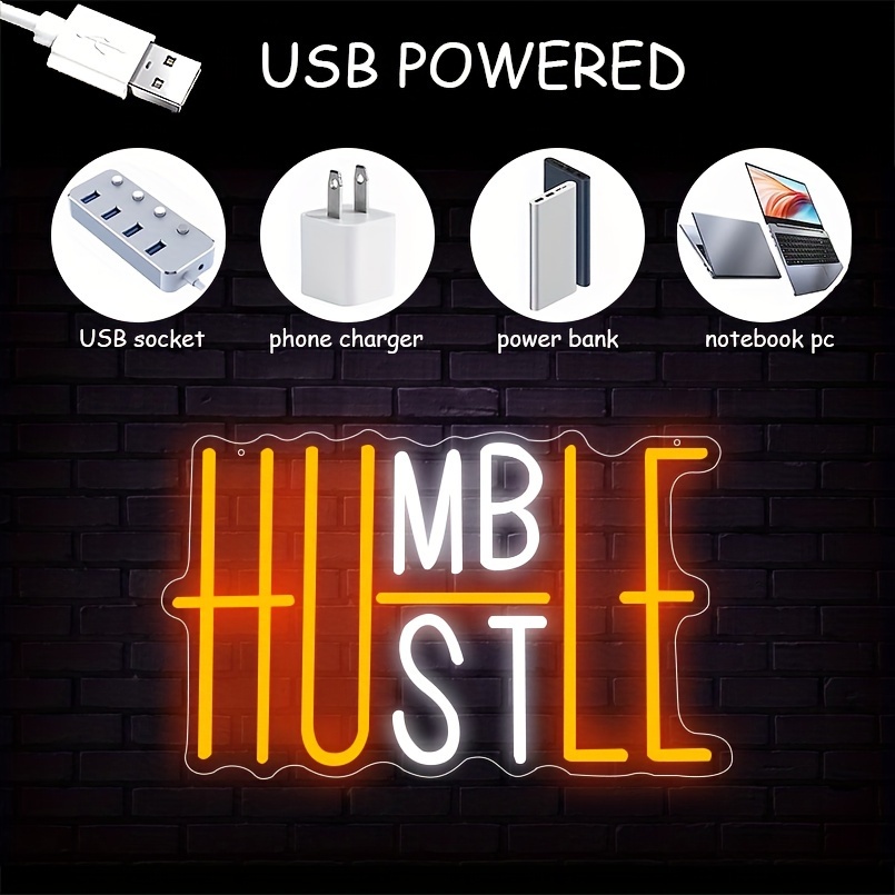 1 pc Hustle LED neon sign, ambient wall decoration neon sign for parties, gyms, homes, living rooms, bars, clubs, bedrooms and home wall decorations, preferred as birthday and holiday gifts for friends and family, USB powered illuminated sign hanging device, 5V USB power supply