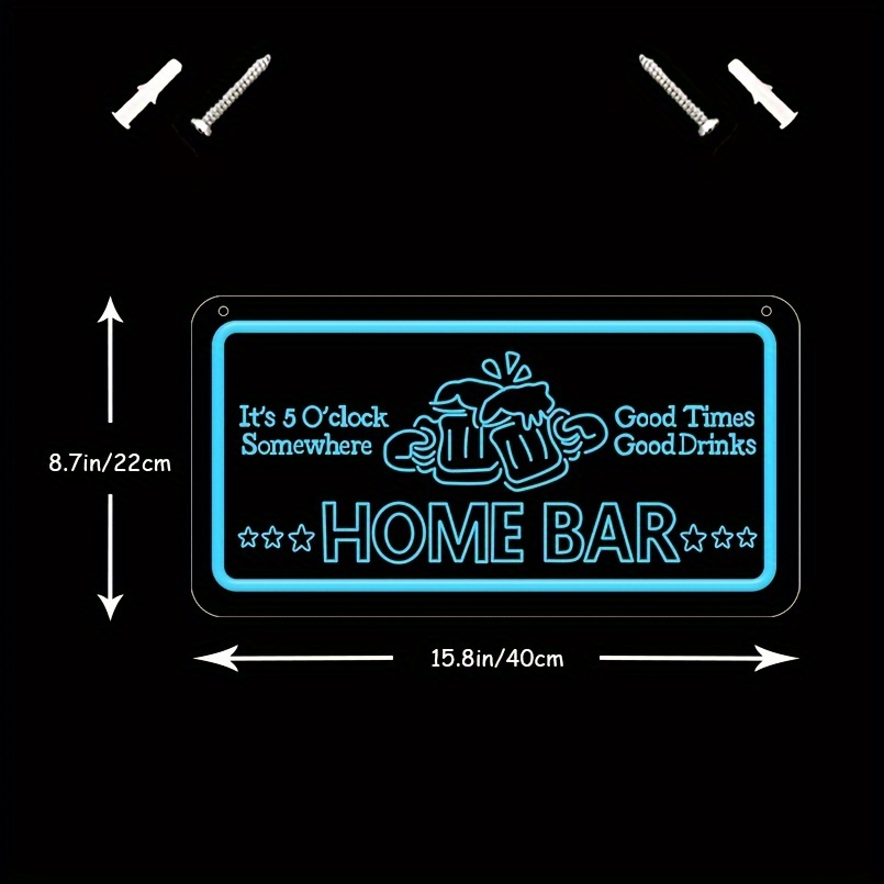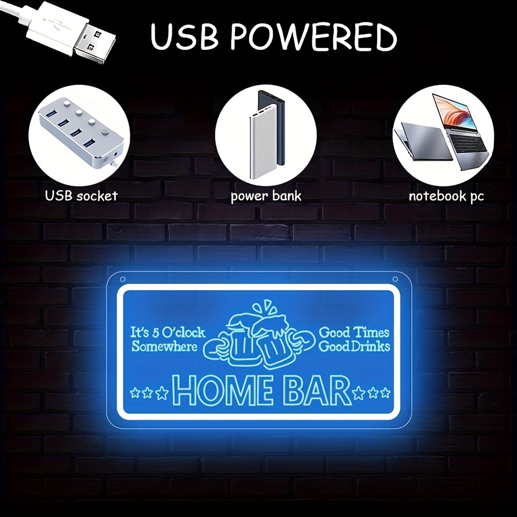 1 pc Ice Blue HOME BAR LED Neon Sign, 3D Engraving, Beer Mug Ambiance Wall Decoration Neon Sign for bars, parties, offices, game rooms, homes, clubs, living rooms, bedrooms and home wall decorations, preferred as birthday and holiday gifts for friends and family, USB Powered Illuminated Sign Hanging Unit, 5V USB Power Supply