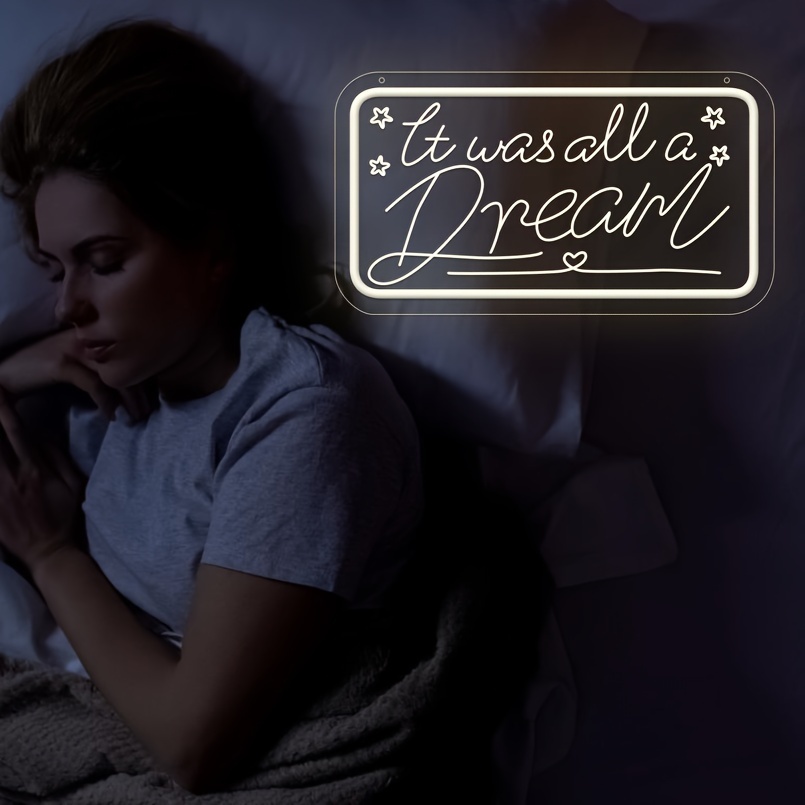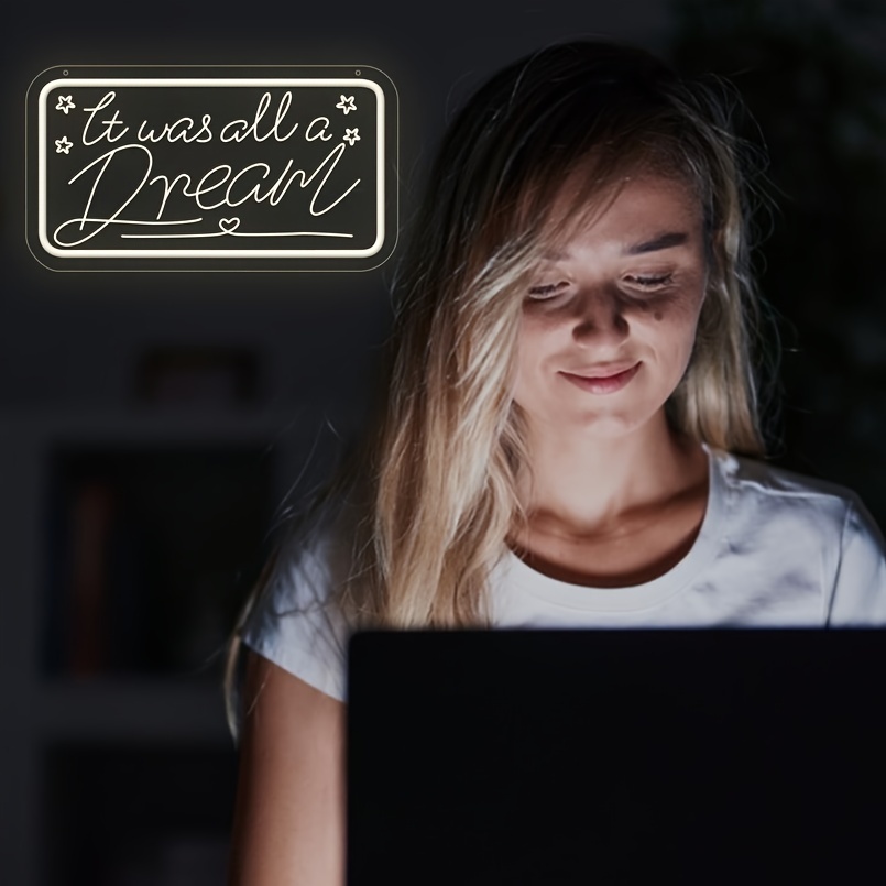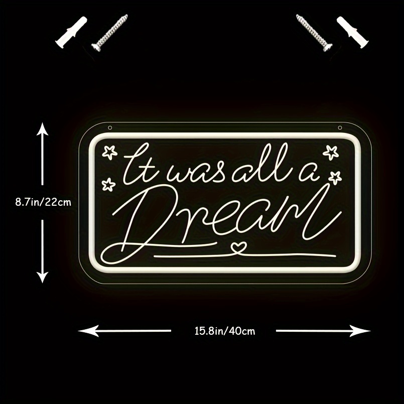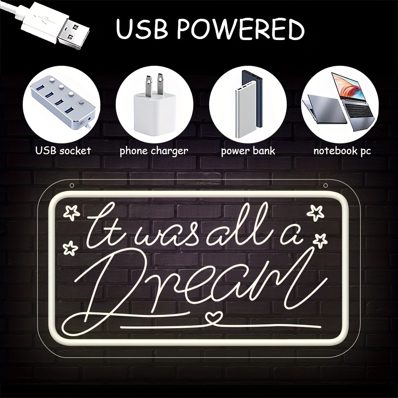 1 pc It Was All A Dream LED Neon Sign, 3D Engraving, Ambient Wall Decoration Neon Sign for Birthday Parties, Cafes, Bars, Offices, Families, Clubs, Living Rooms, Bedrooms and Home Wall Decorations, Preferred as Birthday and Holiday Gifts for Friends and Family, USB Powered Illuminated Sign Hanging Unit, 5V USB Power Supply