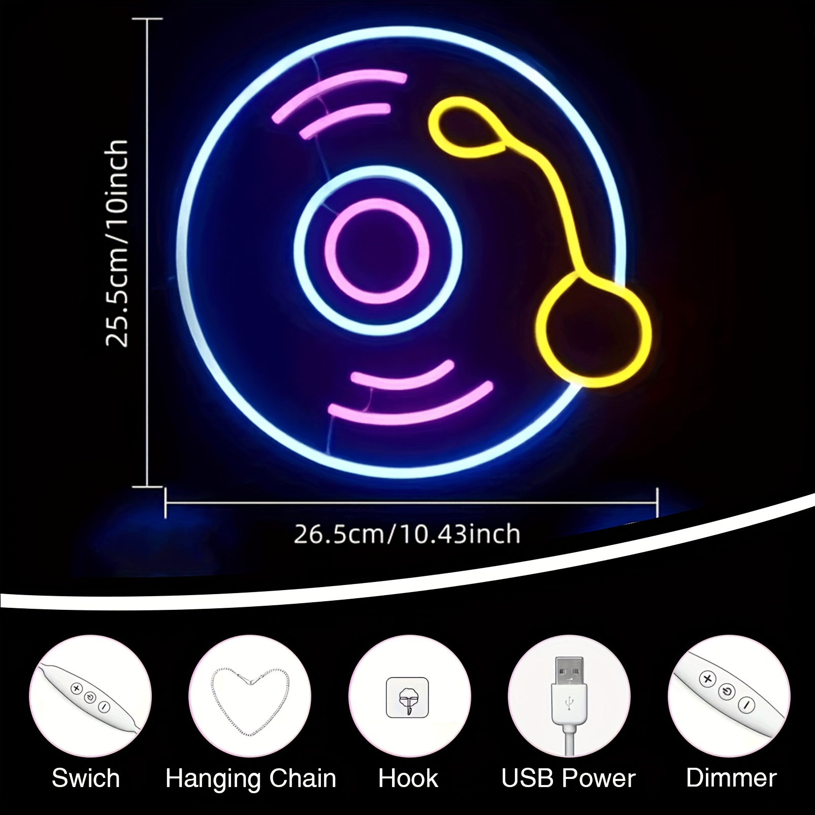 1 pc Music LED neon sign, music themed ambient wall decoration neon sign for music themed parties, offices, concert halls, game rooms, homes, clubs, living rooms, bars, bedrooms and home wall decorations, preferred choice for friends and family’s birthdays, music hobby gifts, USB powered illuminated sign hanging device, 5V USB power supply