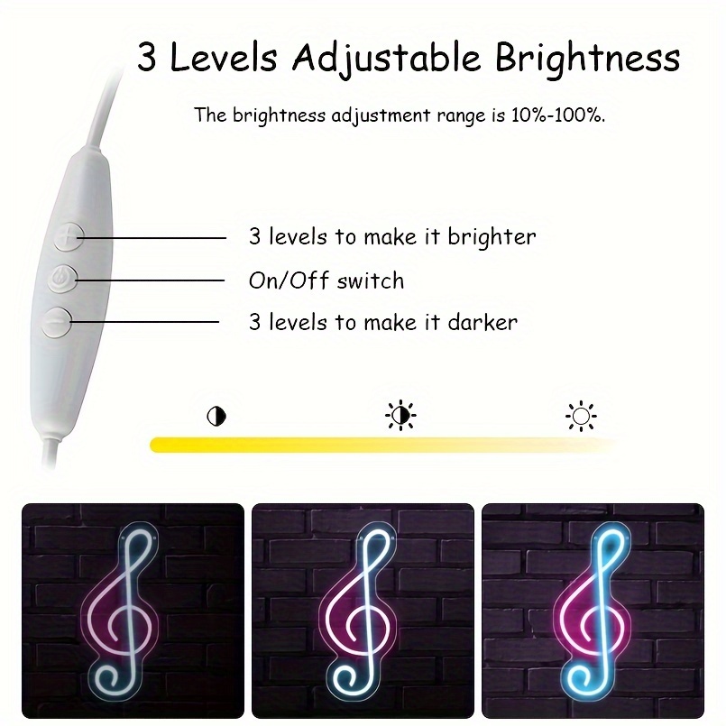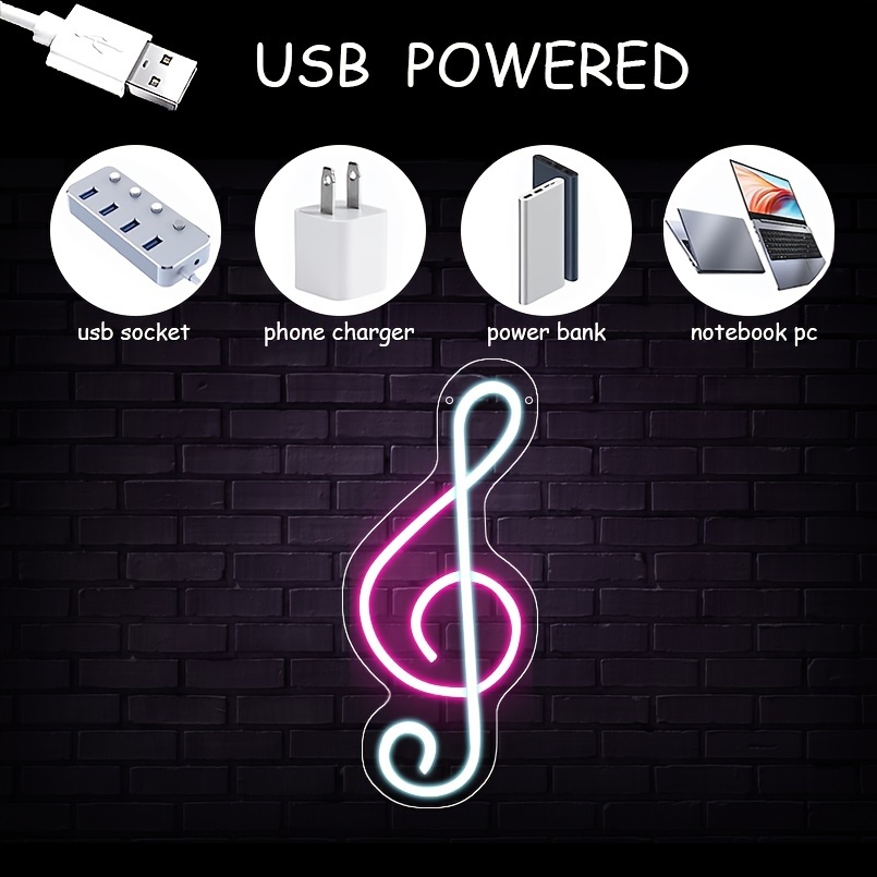 1 pc Music Symbol LED Neon Sign, Ambient Wall Decoration Neon Sign for parties, living rooms, offices, bars, clubs, as a birthday, holiday gift, bedroom and home wall decoration neon sign, 5 V USB power supply
