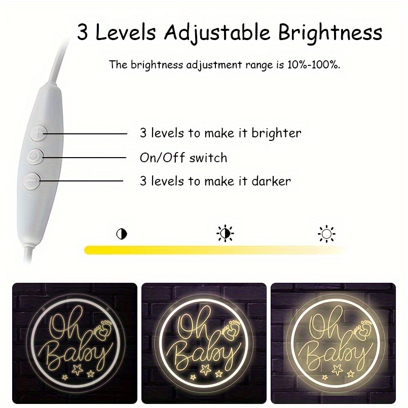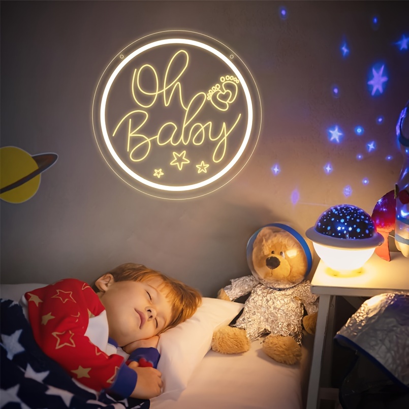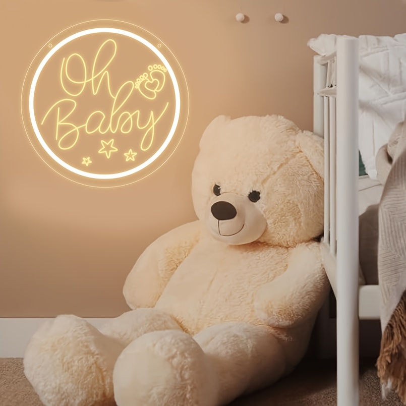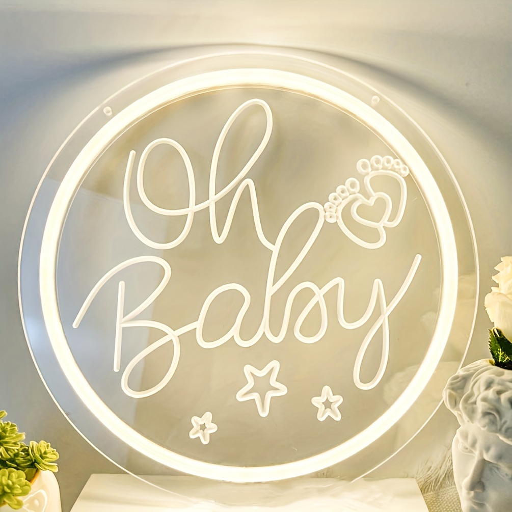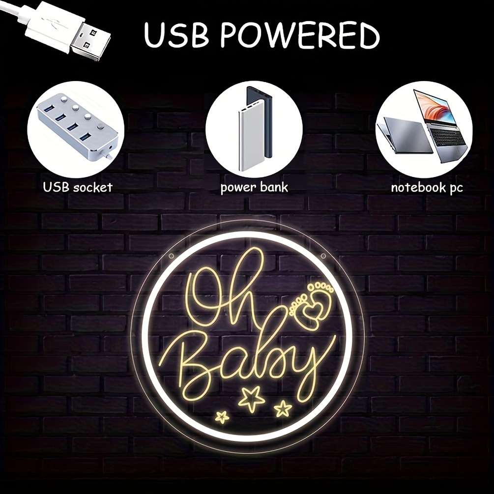 1 pc Oh Baby LED Neon Sign, 3D Engraving, Ambient Wall Decoration Neon Sign for Baby Shower, Birthday Party, Office, Game Room, Family, Club, Living Room, Bar, Bedroom and Home Wall Decoration, Preferred as Birthday and Holiday Gifts for Friends and Family, USB Powered Illuminated Sign Hanging Unit, 5V USB Power Supply