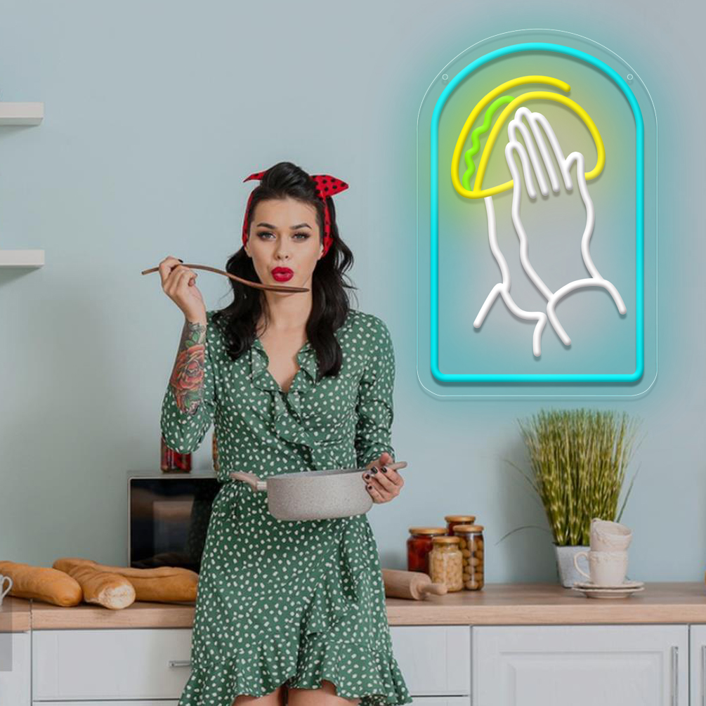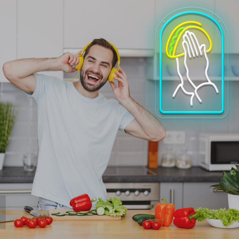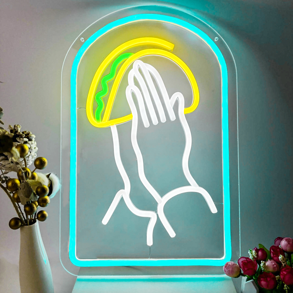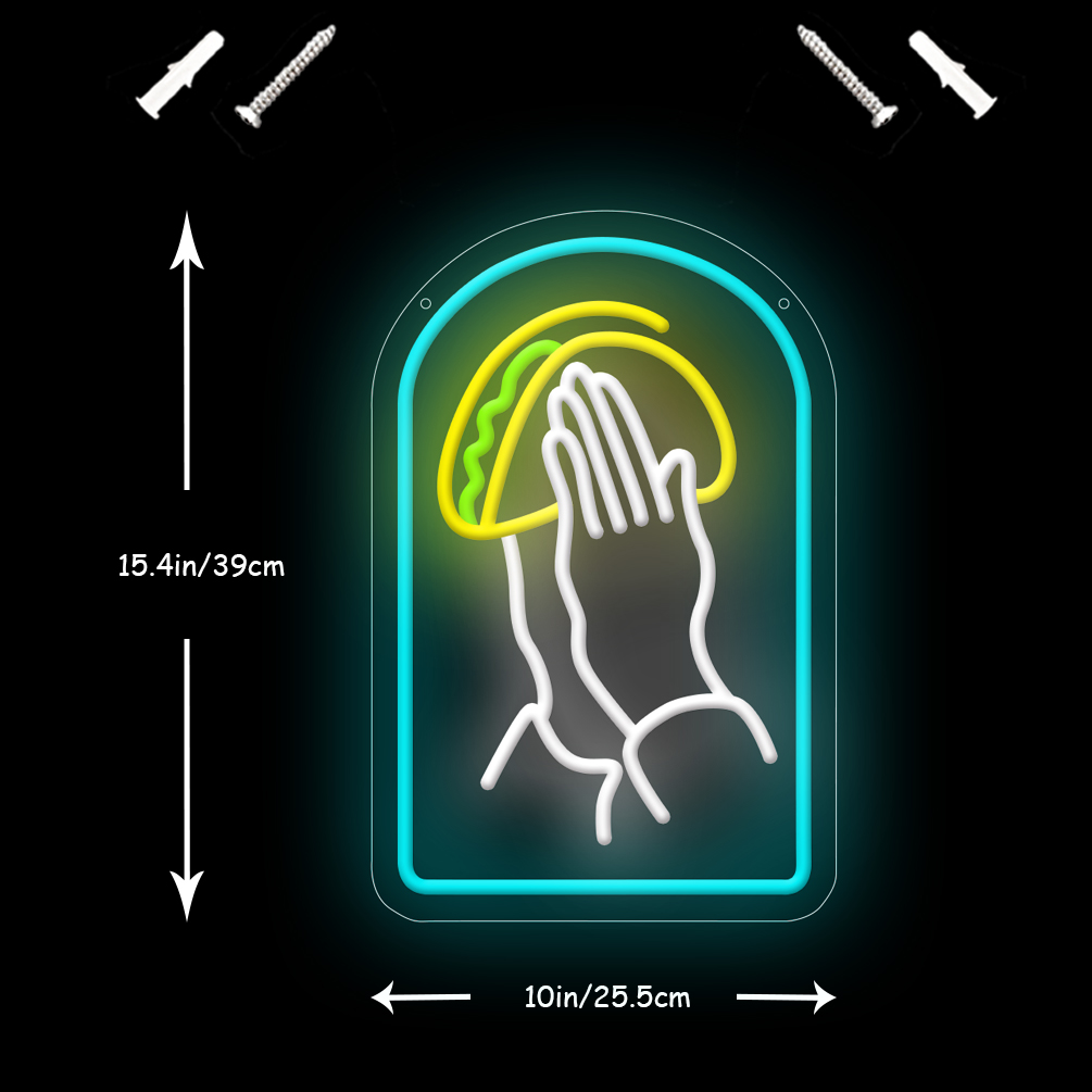 1 pc Praying Hands Handheld Tortilla Neon LED Sign, Tortilla Neon is Mexican Food Store Wall Decoration Business Neon Decorations, Great for Parties, Bedrooms, Bars, Shops, Rooms, Friends Gathering Wall Decorations, Gift for Tortilla Lovers