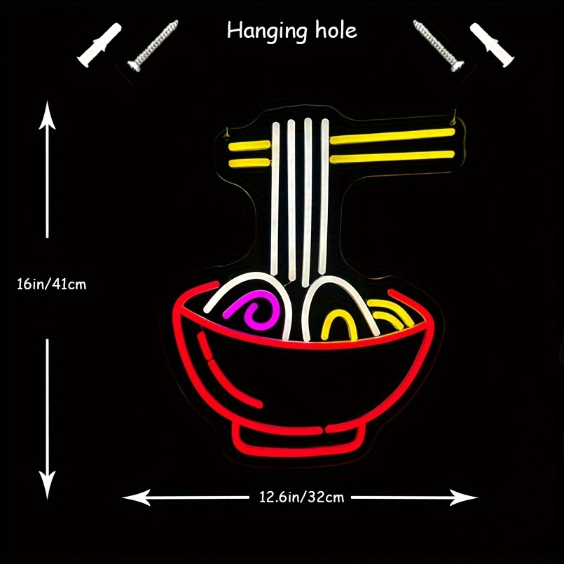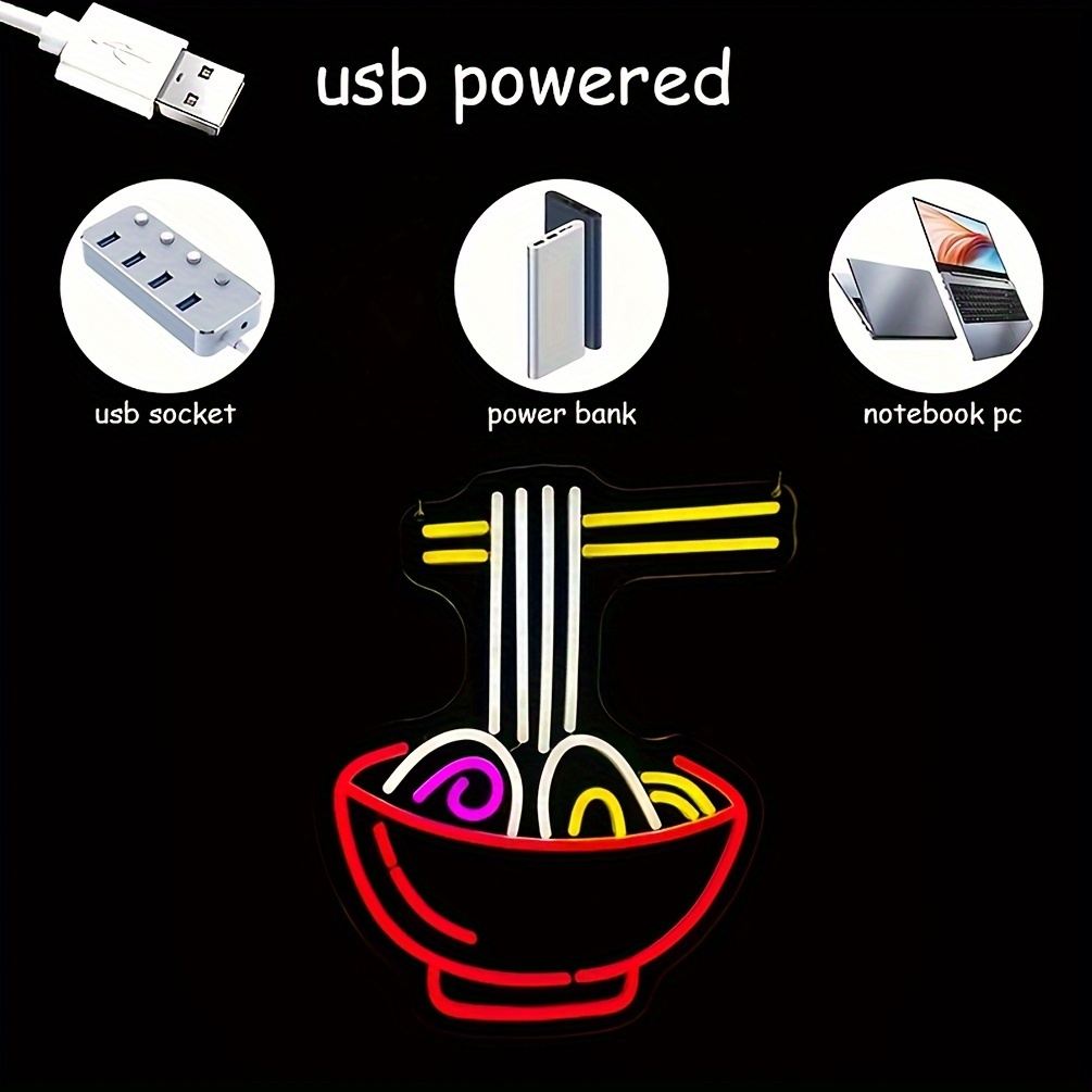1 pc Ramen LED Neon Sign, Ambient Wall Decor Neon Sign for Kitchen, Party, Living Room, Dining Room, as Birthday, Holiday Gift, Bedroom and Home Wall Decor Neon Sign, 5V USB Power Supply