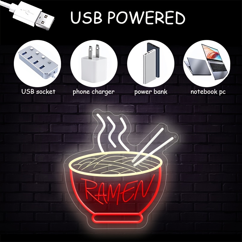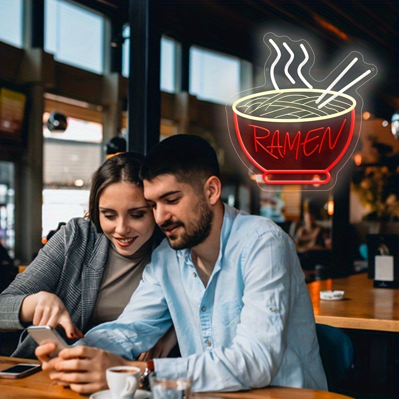1 pc Red Ramen LED Neon Sign, 3D Engraving, Ambient Wall Decoration Neon Sign for Shops, Restaurants, Parties, Coffee Shops, Families, Living Rooms, Bedrooms and Home Wall Decorations, Preferred as Birthday and Holiday Gifts for Friends and Family, USB Powered Illuminated Sign Hanging Unit, 5V USB Power Supply