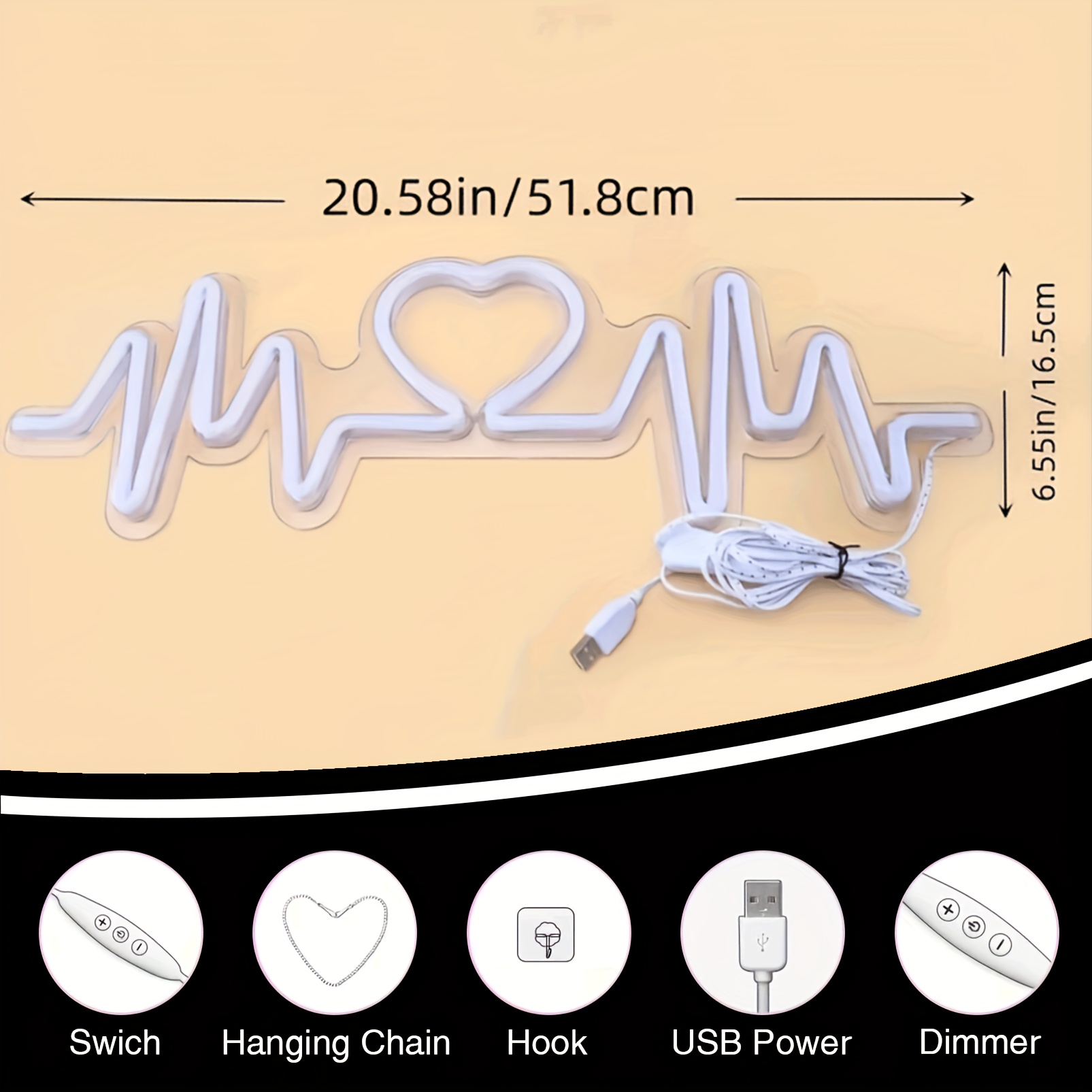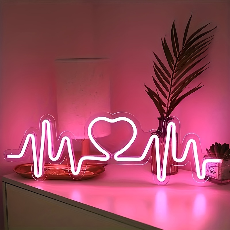 1 pc Romantic Heartbeat LED Neon Sign, Wall Decor Neon Sign for Home, Wedding, Party, Engagement, Bar, Living Room, Birthday and Holiday Gifts, Bedroom and Home Wall Decor, USB Powered Illuminated Sign Hanging Unit, 5V USB Power Supply