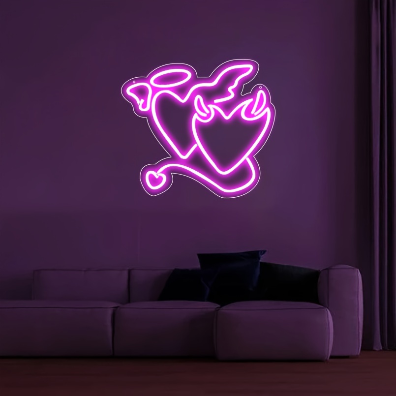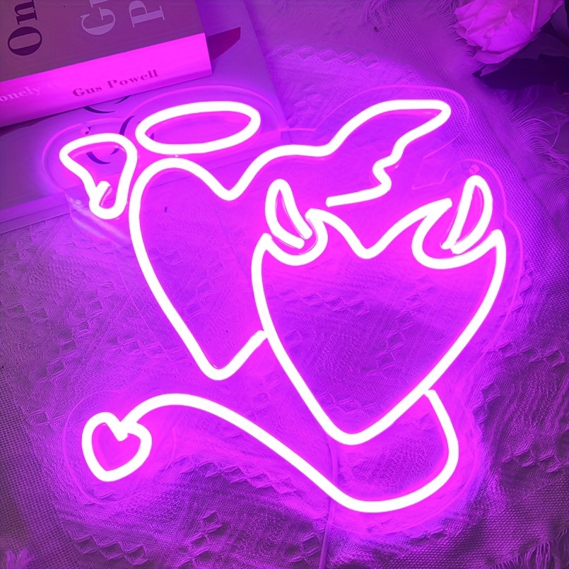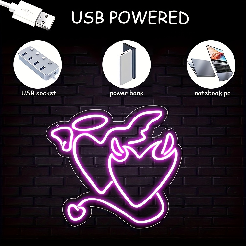 1 pc Rose Angel Demon LED Neon Sign, Space Ambiance Wall Decor Neon Sign for Home, Party, Living Room, Game Room, Club, as Birthday, Holiday Gift, Bedroom and Home Wall Decor Neon Sign, 5 V USB Power Supply