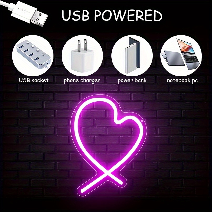 1 pc Rose Heart Tail LED Neon Sign, Wall Decor Neon Sign for Home, Wedding Party, Engagement, Bar, Living Room, Birthday and Holiday Gifts, Bedroom and Home Wall Decor Neon Sign, 5 V USB Power Supply