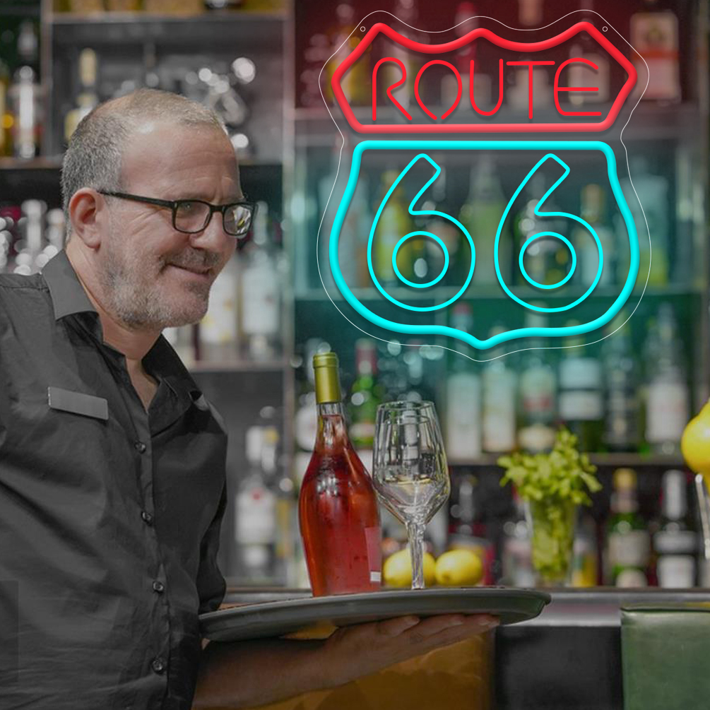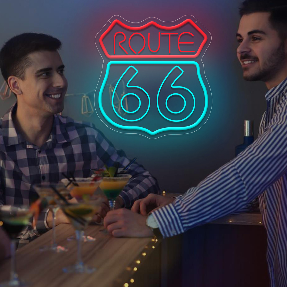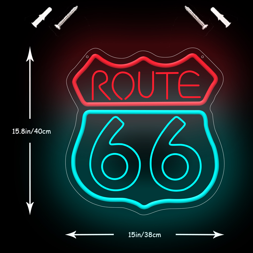 1 pc Route 66 LED neon sign, 3D engraved ambient wall decoration neon sign for party, office, game room, home, club, living room, bar, bedroom and home wall decoration, preferred as friends and family birthday, holiday gift, USB powered light up sign hanging device, 5V USB power supply