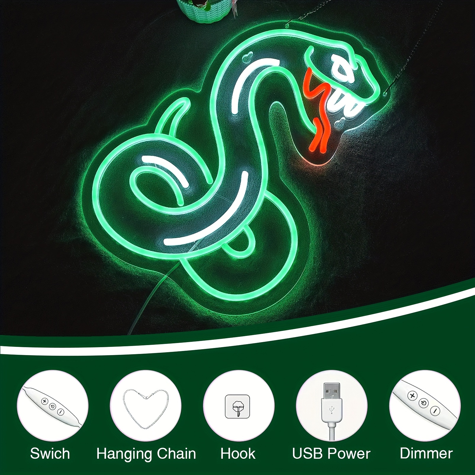 1 pc Snake LED Neon Sign, Wall Decor Neon Illuminated Sign for Birthday Parties, Game Rooms, Shops, Bars, Clubs, Bedrooms and Home Wall Decor Neon Sign, 5 V USB Power Supply