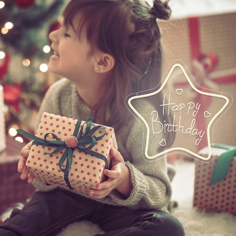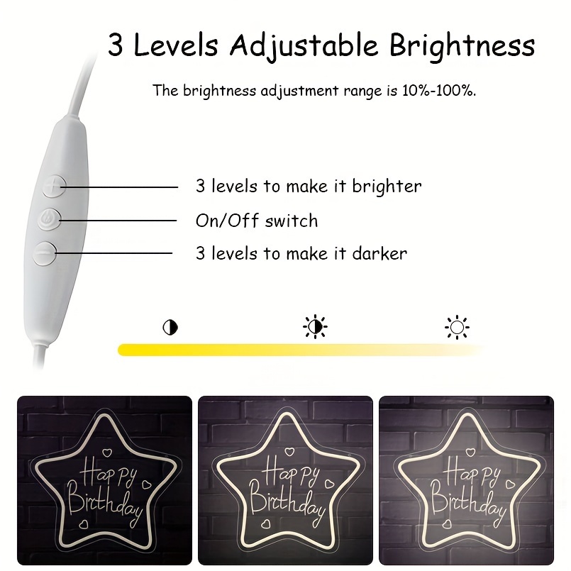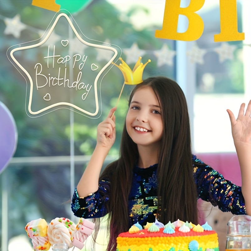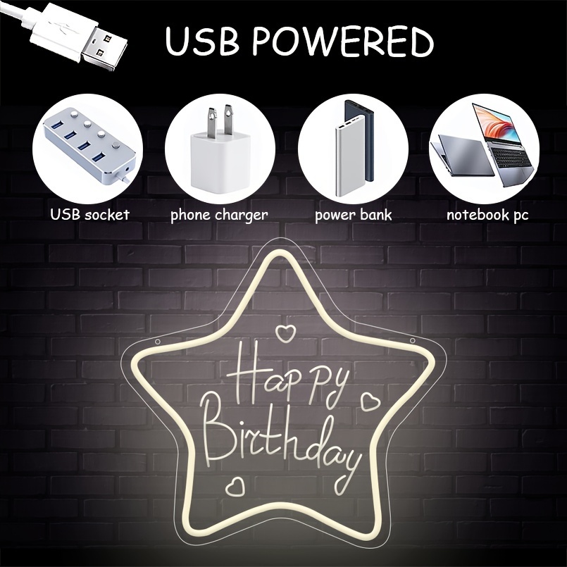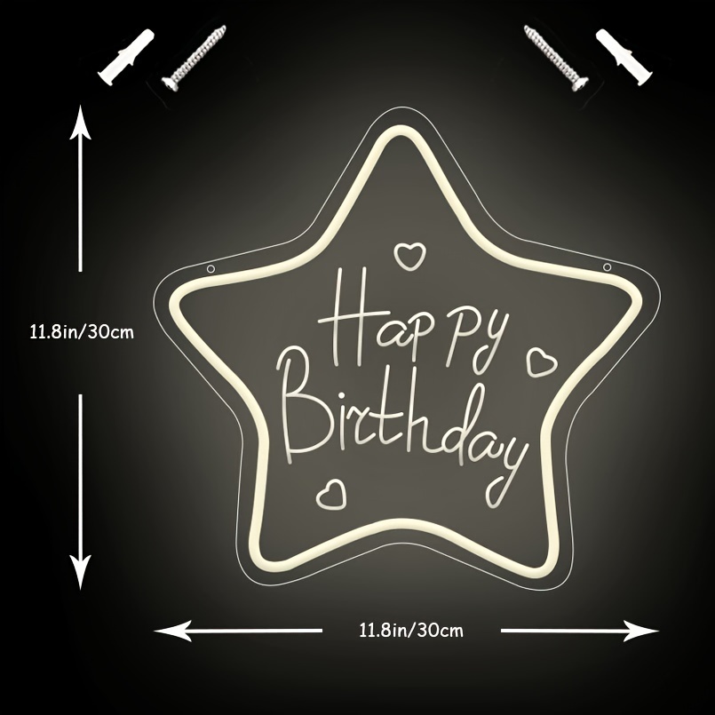 1 pc Star Happy Birthday LED Neon Sign, 3D Engraving, Ambient Wall Decoration Neon Sign for Birthday Party, Bar, Office, Home, Club, Living Room, Bedroom and Home Wall Decoration, Preferred as Birthday and Holiday Gift for Friends and Family, USB Powered Illuminated Sign Hanging Unit, 5V USB Power Supply