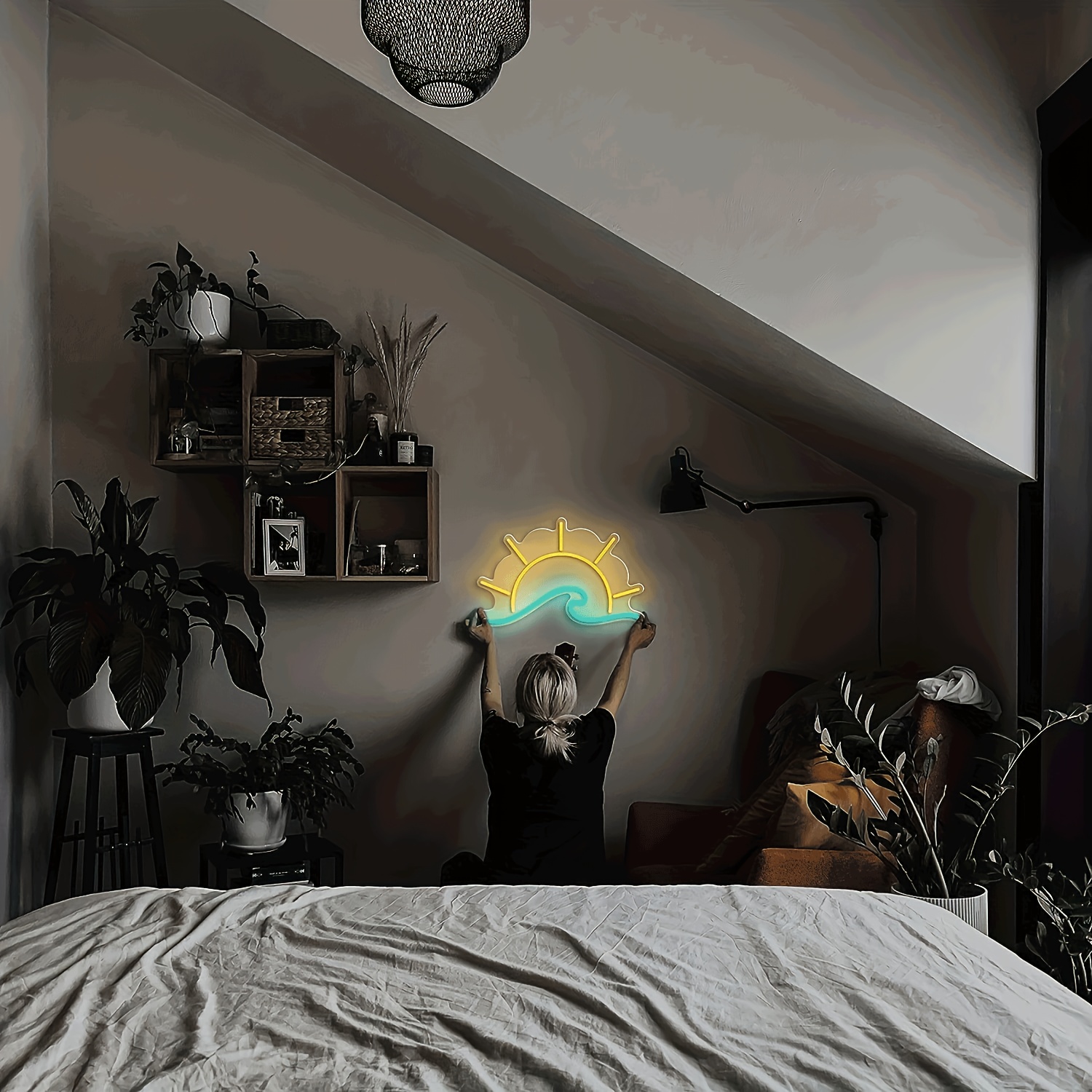 1 pc Sunset Sunrise LED neon sign, Sun On The Sea ambient wall decor neon sign for home, party, living room, bar, club, hotel, club, as a birthday, holiday gift, bedroom and home wall decor, USB powered illuminated sign hanging unit, 5V USB power supply