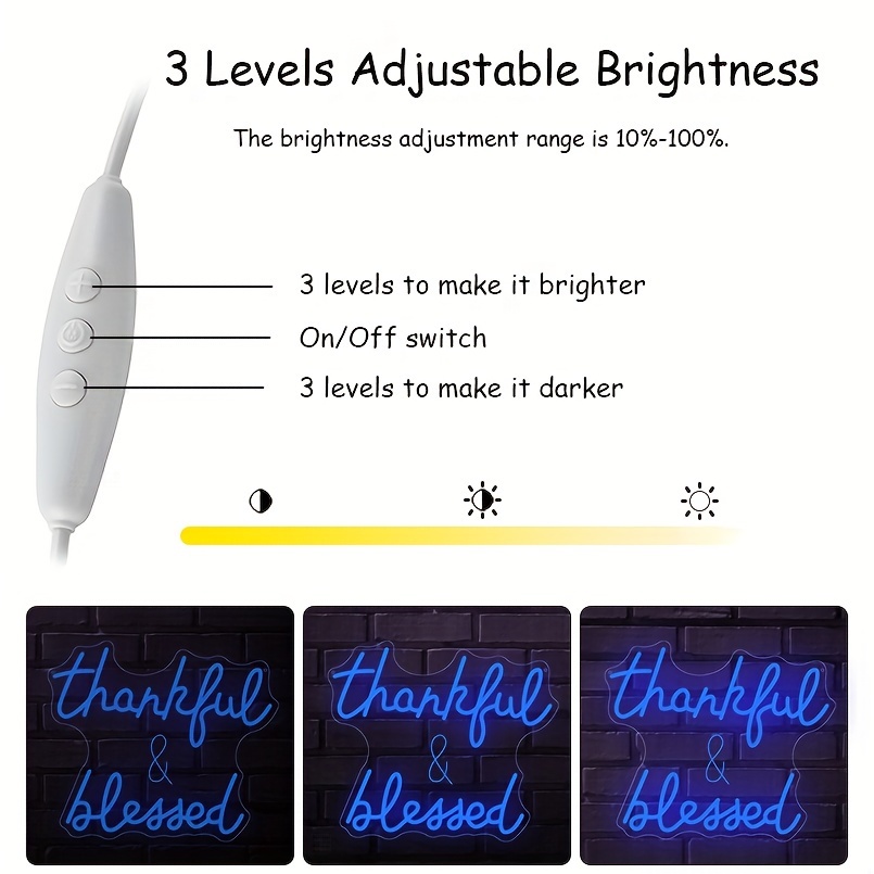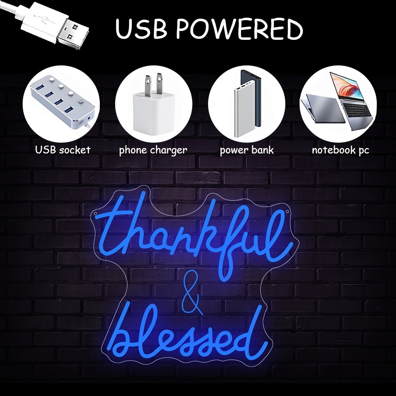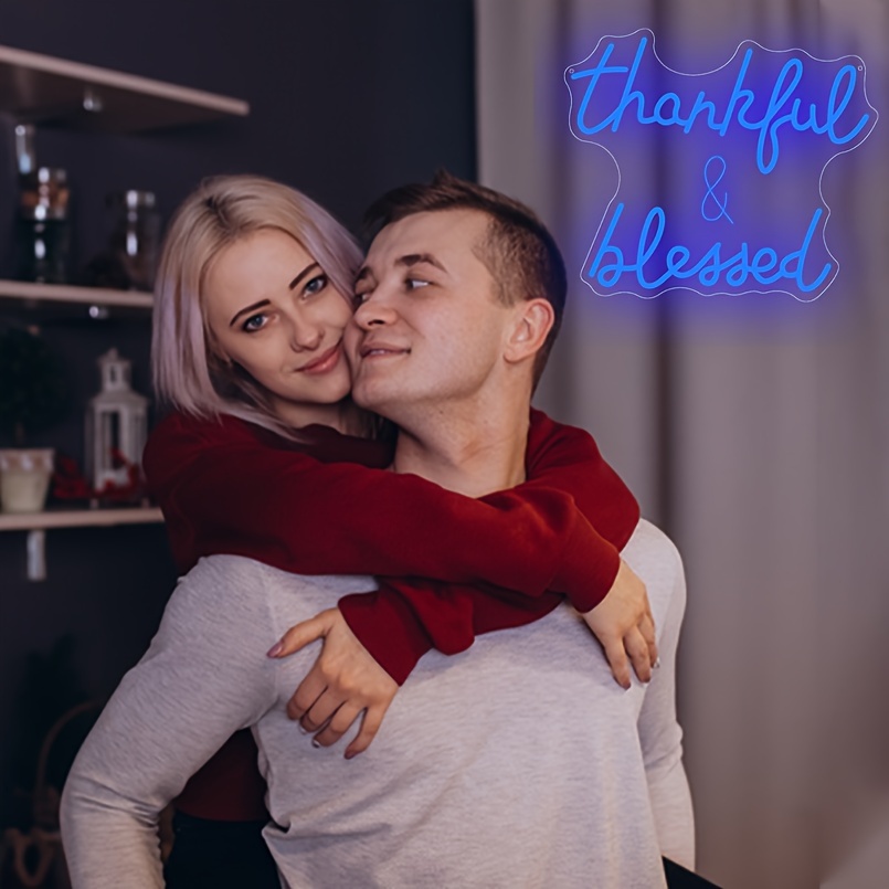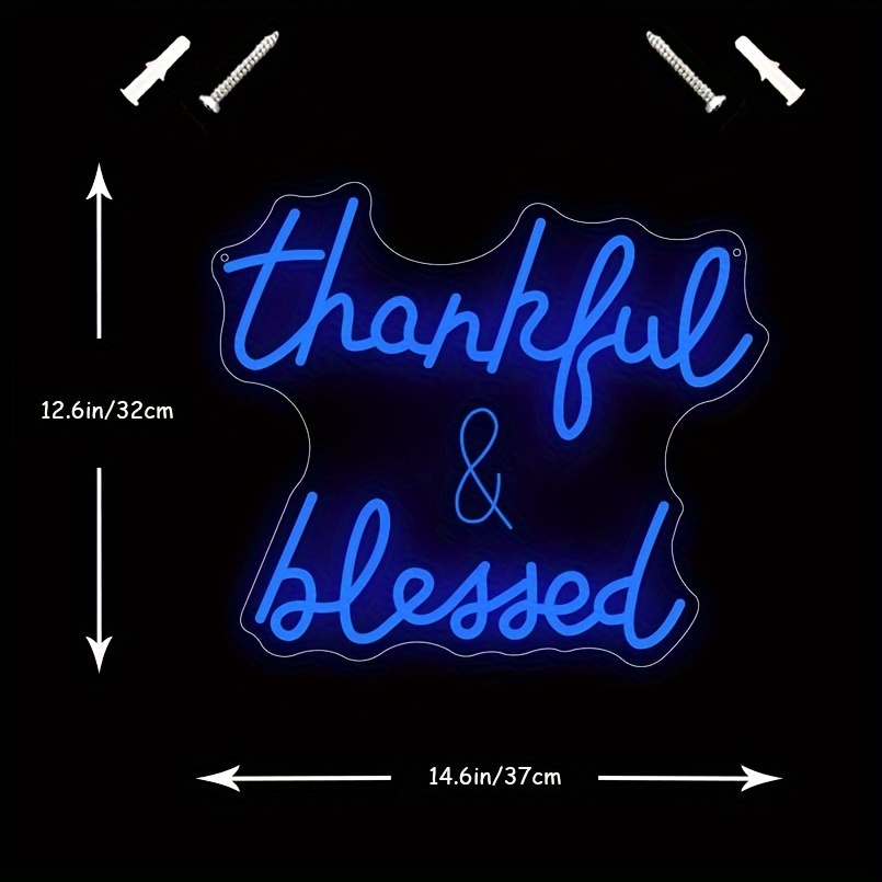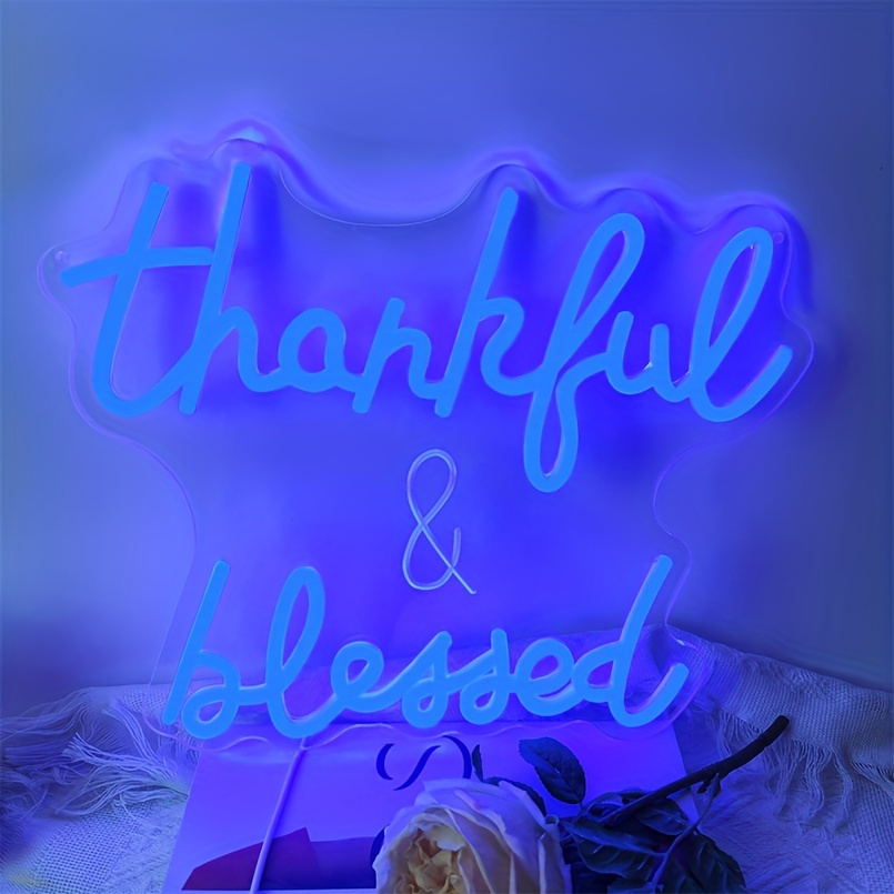 1 pc Thankful and Blessed LED Neon Sign, 3D Engraving, Ambient Wall Decoration Neon Sign for Wedding, Bar, Birthday Party, Office, Home, Club, Living Room, Bedroom and Home Wall Decoration, Preferred as Birthday and Holiday Gifts for Friends and Family, USB Powered Illuminated Sign Hanging Unit, 5V USB Power Supply