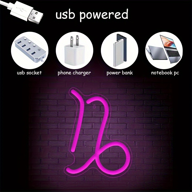 1 pc The Zodiac Horoscope LED Neon Sign, Astrology Horoscope Ambiance Wall Decoration Neon Sign for Home, Party, Living Room, Bar, Club, Game Room, as Birthday, Holiday Gift, Bedroom and Home Wall Decoration, USB Powered Illuminated Sign Hanging Unit, 5V USB Power Supply