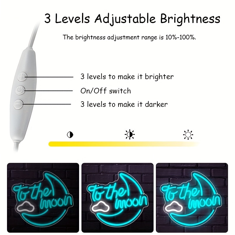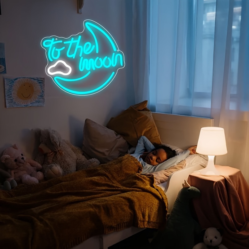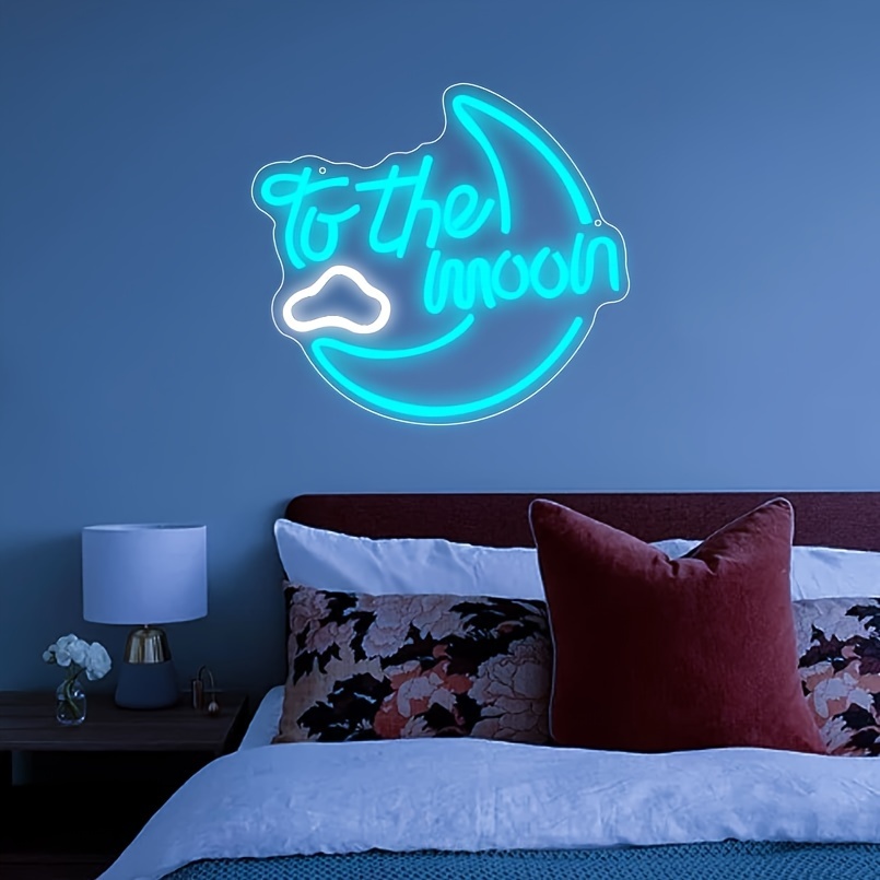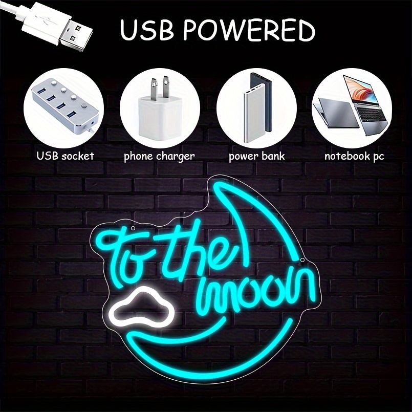 1 pc To The Moon LED neon sign, ambient wall decoration neon sign for studio, party, game room, family, living room, bar, club, bedroom and home wall decoration, preferred as friends and family birthday, holiday gift, USB powered light up sign hanging device, 5V USB power supply