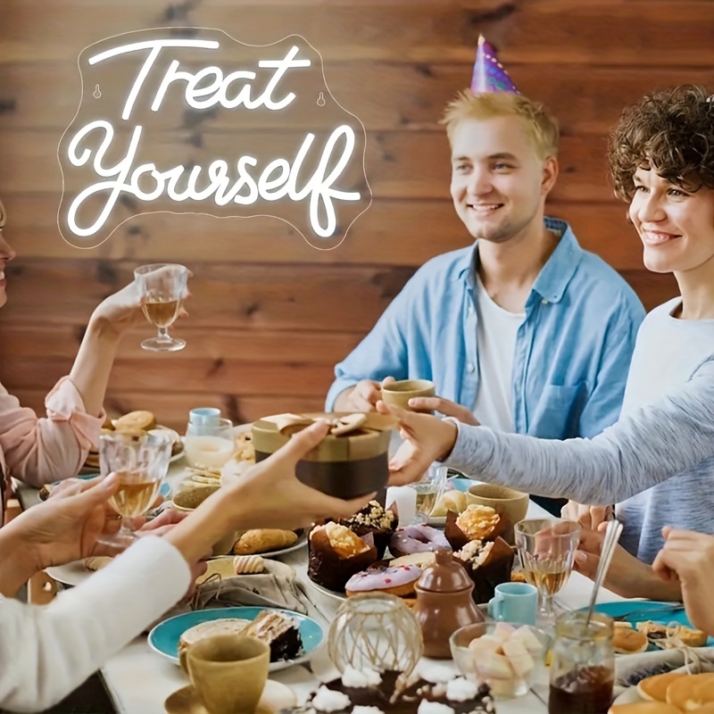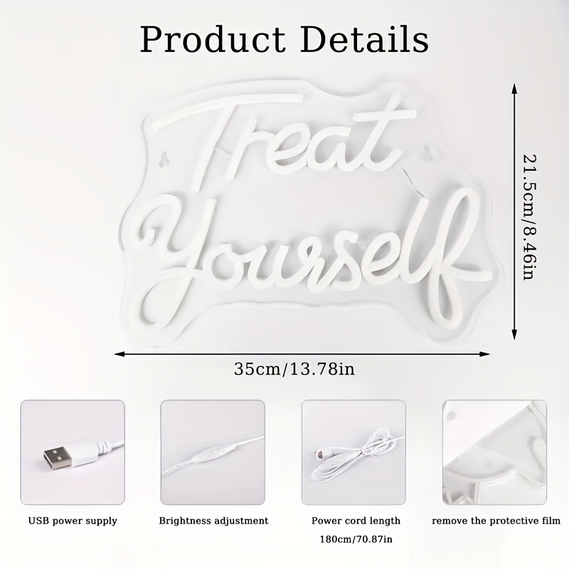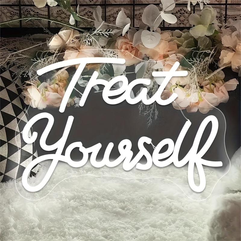 1 pc Treat yourself LED Neon Sign, Wall Decoration Neon Sign for Wedding, Party, Family, Bedroom and Home Wall Decoration, 5 V USB Power Supply