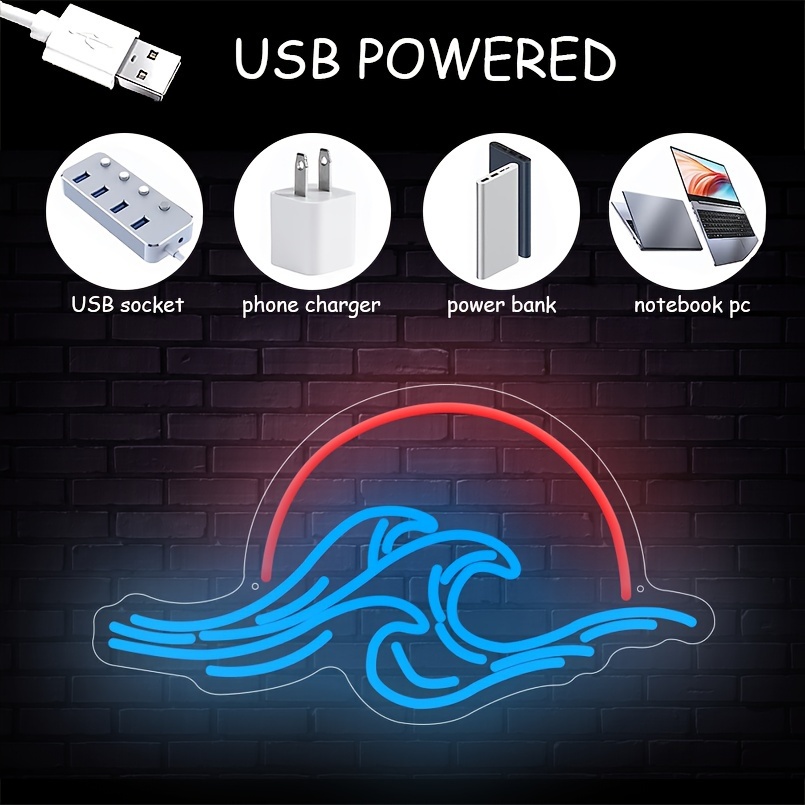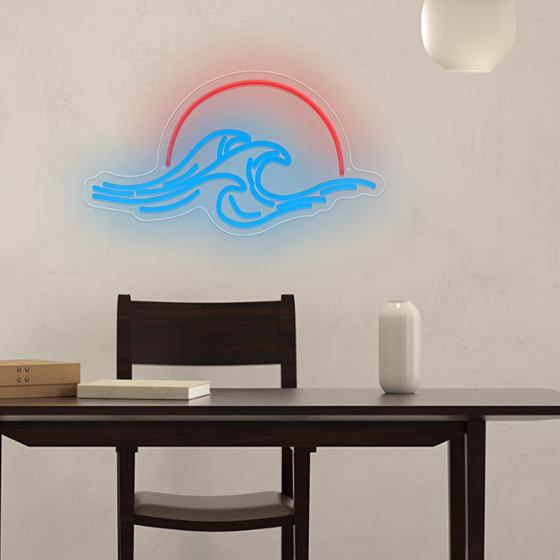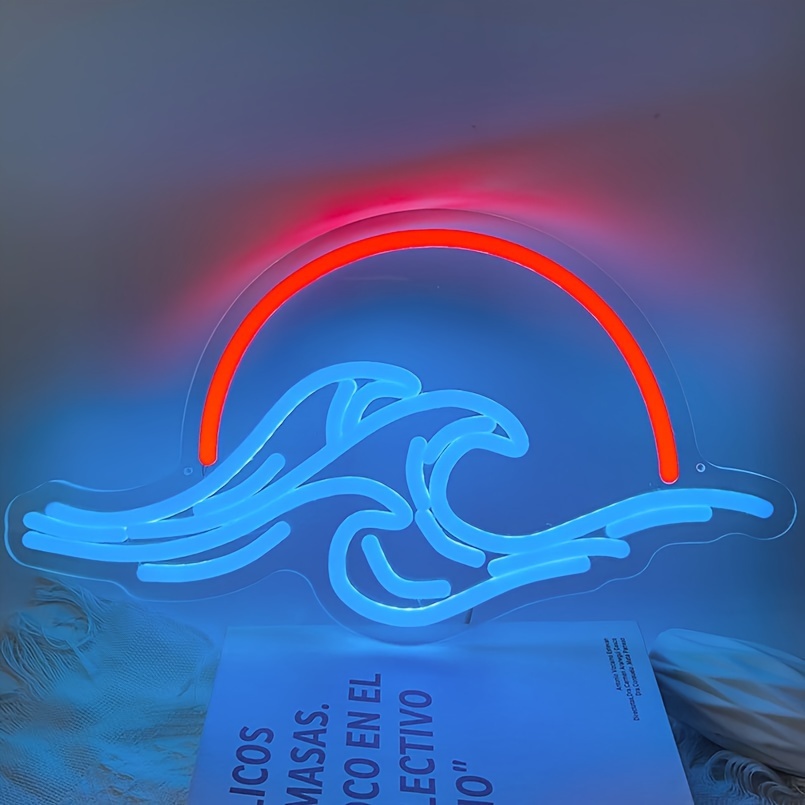 1 pc Tropical Ocean Wave LED Neon Sign, Ambient Wall Decor Neon Sign for Game Rooms, Homes, Parties, Living Rooms, Offices, Bars, Clubs, as Birthday, Holiday Gifts, Bedroom and Home Wall Decor Neon Sign, 5 V USB Power Supply