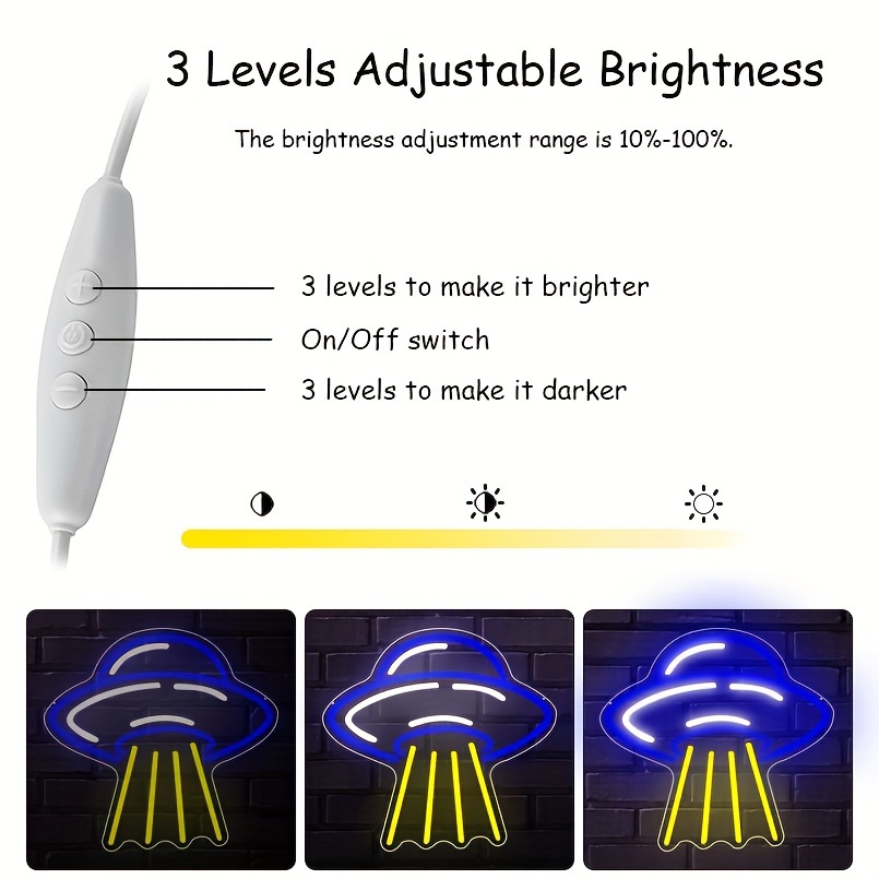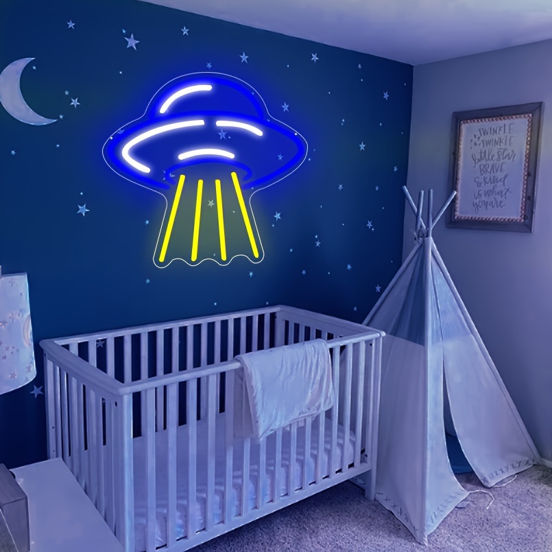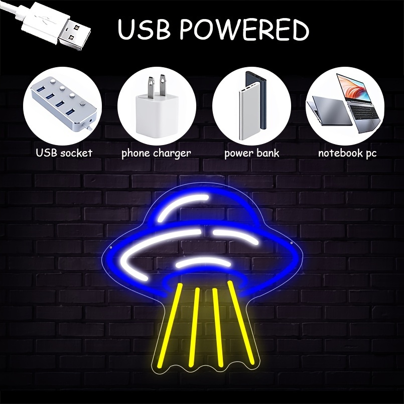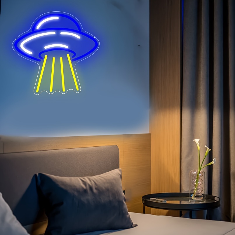 1 pc UFO Alien Spaceship LED Neon Sign, Science Museum Ambiance Wall Decor Neon Sign for Home, Party, Living Room, Bar, Club, Game Room, as Birthday, Astronomy Enthusiast Gift, Bedroom and Home Wall Decor, USB Powered Illuminated Sign Hanging Unit, 5V USB Power Supply