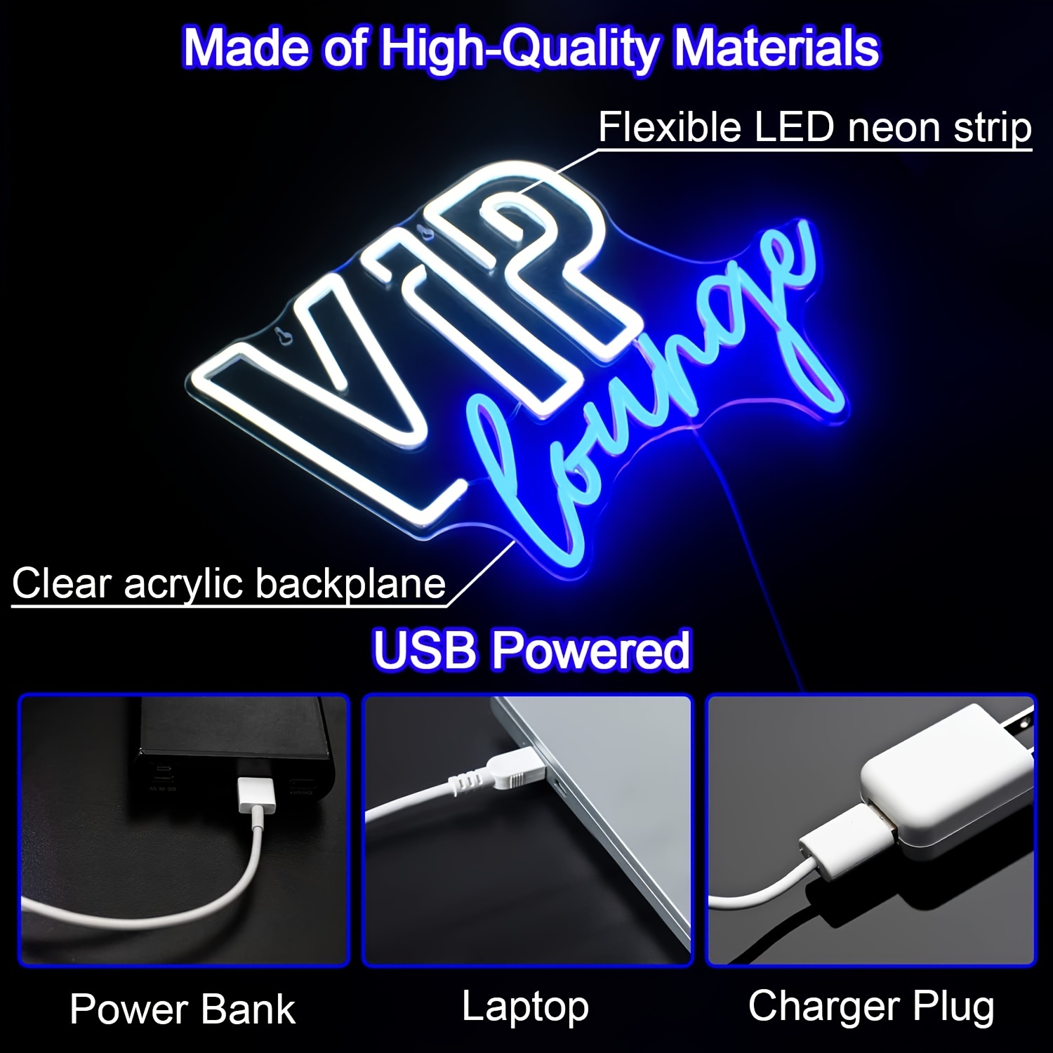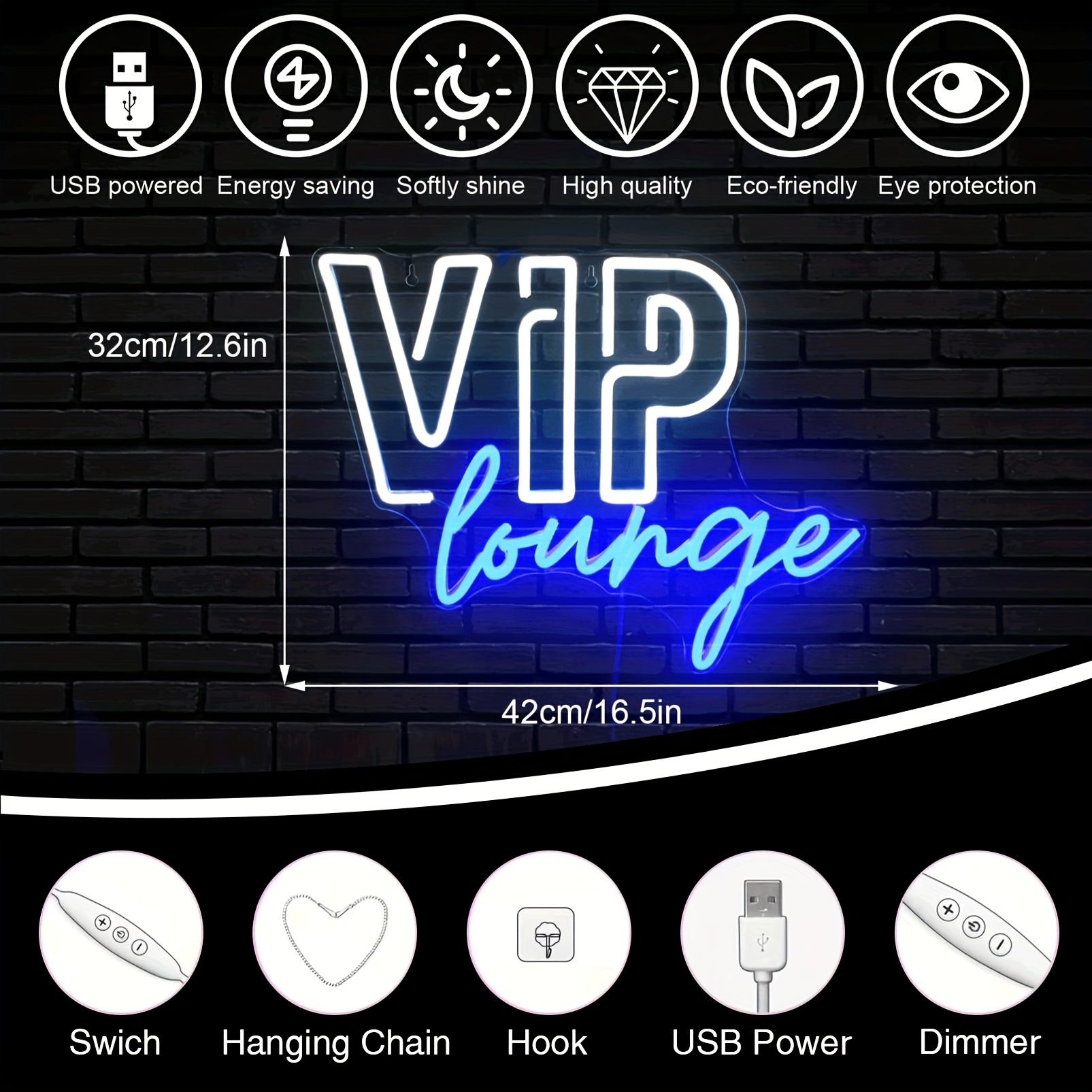 1 pc VIP Lounge LED neon sign, ambient wall decor neon sign for home, party, cafe, bar, club, restaurant, office, as birthday, holiday gift, bedroom and home wall decor neon sign, 5V USB power supply