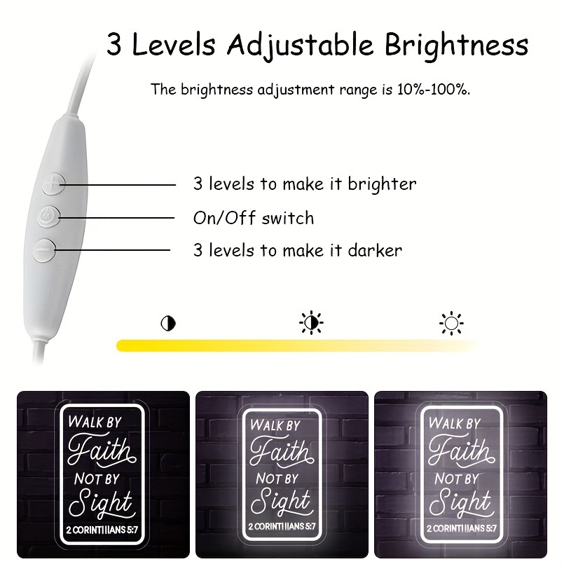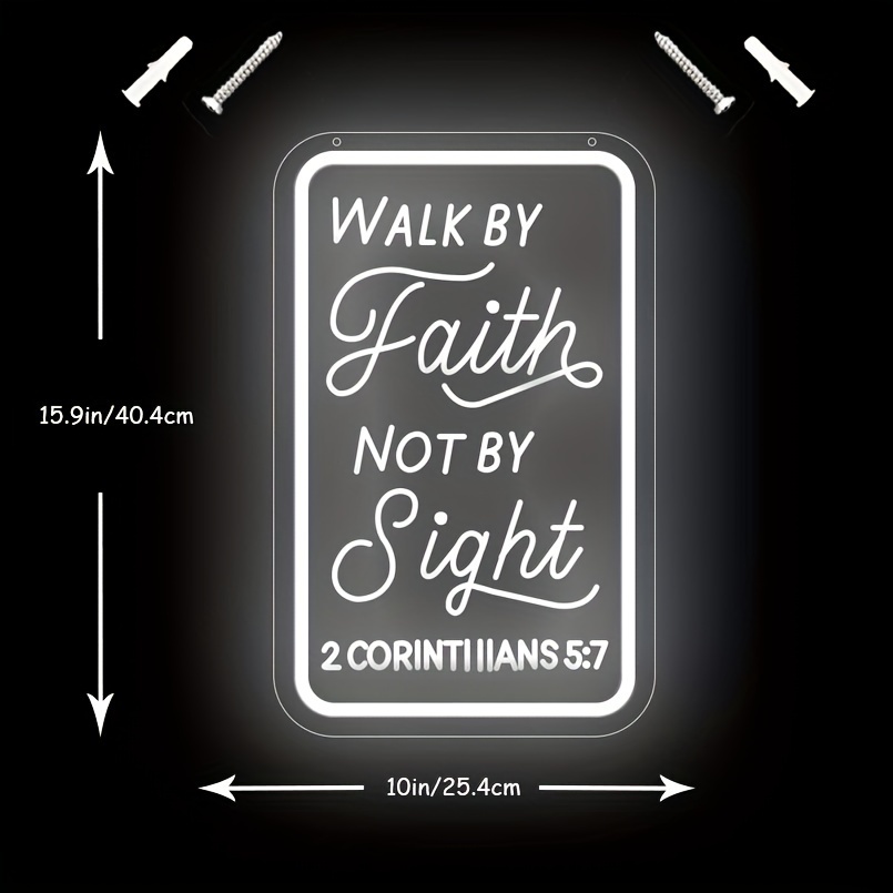 1 pc Walk By Faith Not By Sight LED Neon Sign, 3D Engraving, Christian Wall Decoration Neon Sign for Hallway, Office, Home, Club, Bedroom and Home Wall Decoration, Preferred as Birthday and Holiday Gifts for Friends and Family, USB Powered Illuminated Sign Hanging Unit, 5V USB Power Supply
