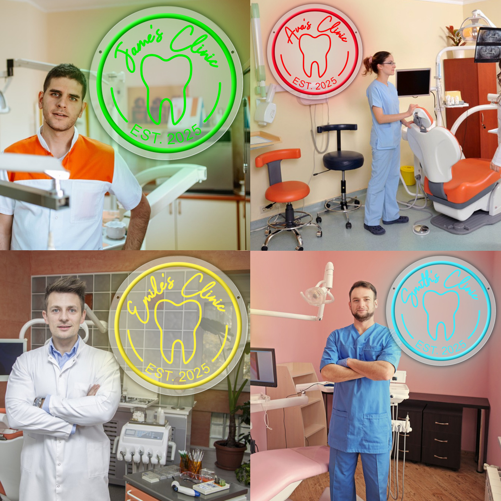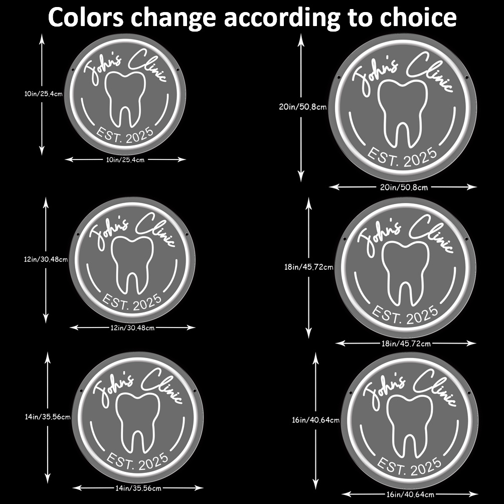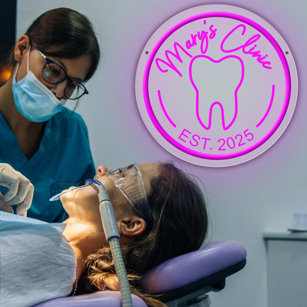 Custom Dental Pattern Name and Year Neon Lights, 3D Engraving, Personalised LED Neon Lights for Dental Clinics, Offices, Dental Decorations, Dental Students and Birthday Celebrations Party Decorations, Unique and Ideal Favours for Dental Clinics, Dentist Gifts and other venues!