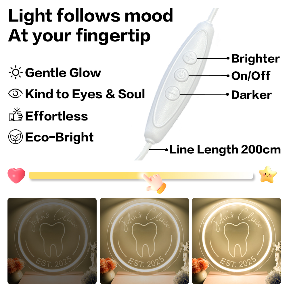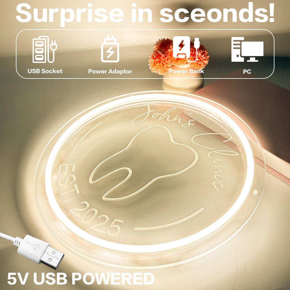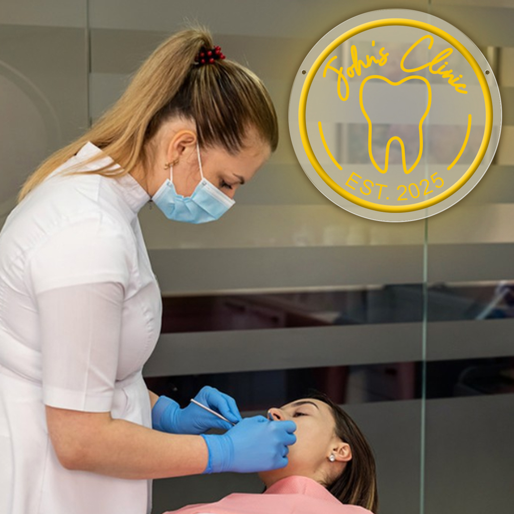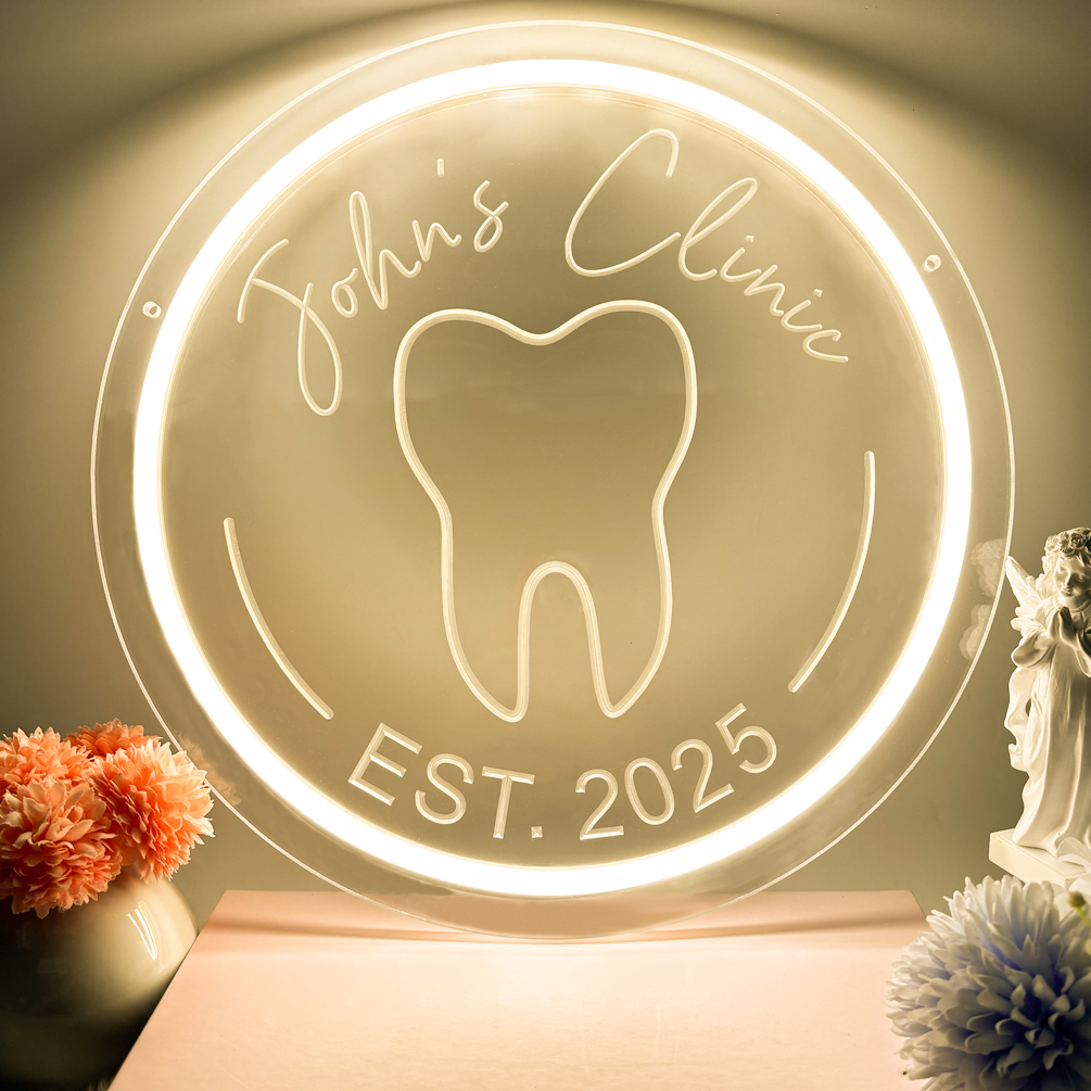 Custom Dental Pattern Name and Year Neon Lights, 3D Engraving, Personalised LED Neon Lights for Dental Clinics, Offices, Dental Decorations, Dental Students and Birthday Celebrations Party Decorations, Unique and Ideal Favours for Dental Clinics, Dentist Gifts and other venues!