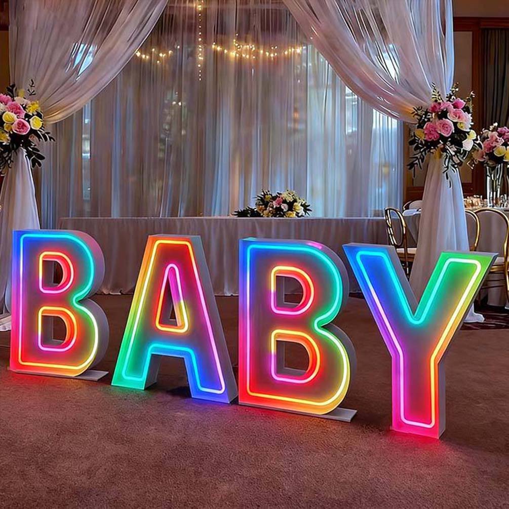These marquee letters can be manufactured according to specific project requirements. Customization options include letter size, depth, bulb color, finishes, and mounting or freestanding configurations. Suitable for weddings, parties, retail displays, and branded environments.