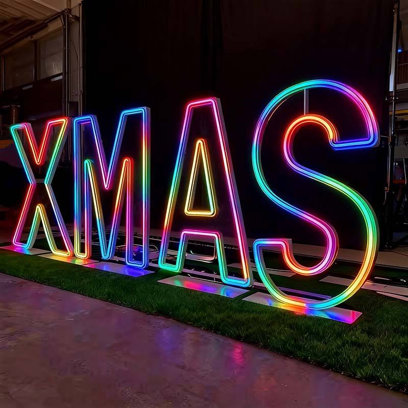 Greenery Marquee Displays combine marquee structures with botanical and greenery décor elements. This design creates a natural, organic, and contemporary visual effect. Precision fabrication ensures reliable structural support and consistent visual balance.