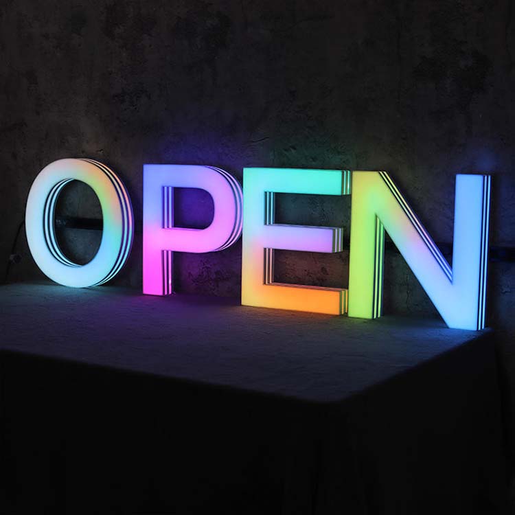 These letters can be manufactured according to specific project requirements. Customization options include fonts, letter size, finishes, RGB control options, and mounting methods. Suitable for entertainment venues, retail branding, and modern displays.