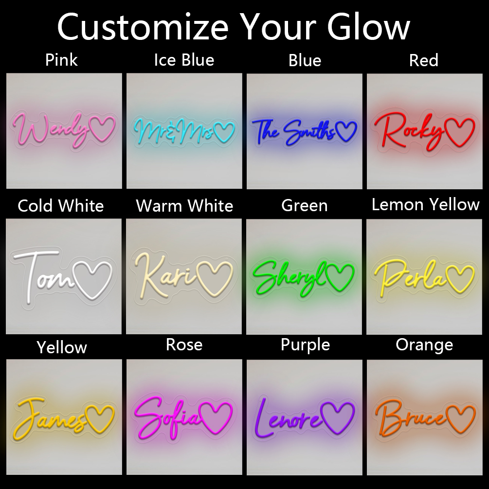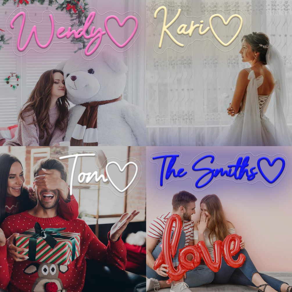 Custom Neon Sign with Positive Heart and Name, Personalised LED Neon for weddings, events, children’s rooms, bedrooms, living rooms and home decor, unique and ideal gift for birthdays, weddings, graduations, Father’s Day, Children’s Day and more!