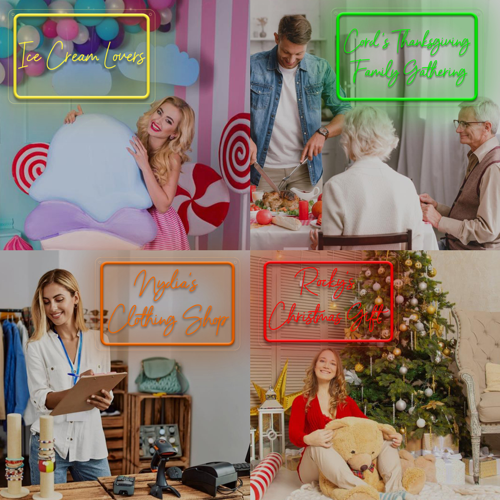 Custom rectangle neon, personalised LED neon sign for wall decoration, custom 3D engraved neon sign for weddings birthday parties business bar sign , a unique and ideal gift for birthdays, weddings, graduations, children’s day, housewarming and other occasions.