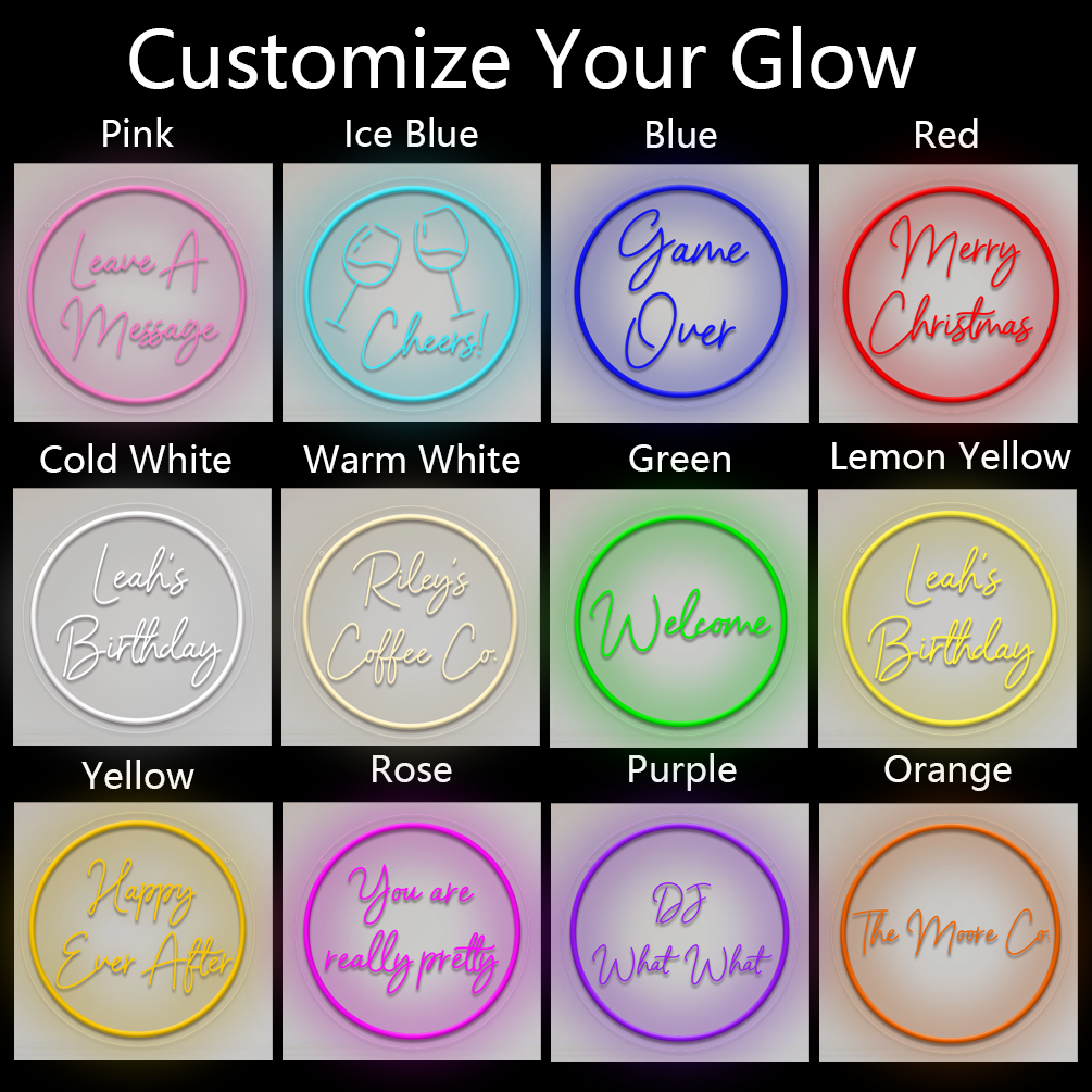 Custom round neon, personalised LED neon sign for wall decoration, customizable 3D engraved neon sign for weddings birthday parties business bar sign , a unique and ideal gift for birthdays, weddings, graduations, children’s day, housewarming and other occasions.