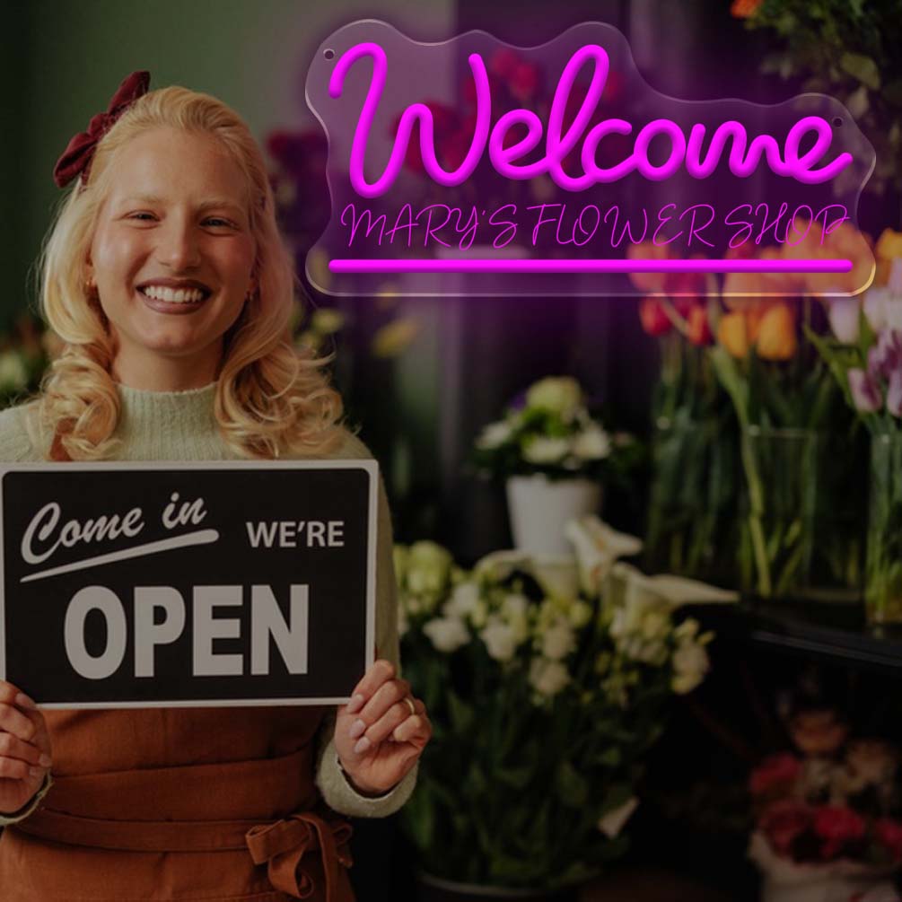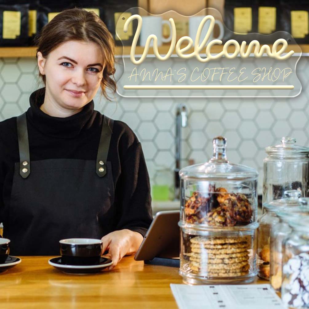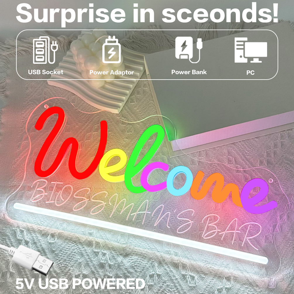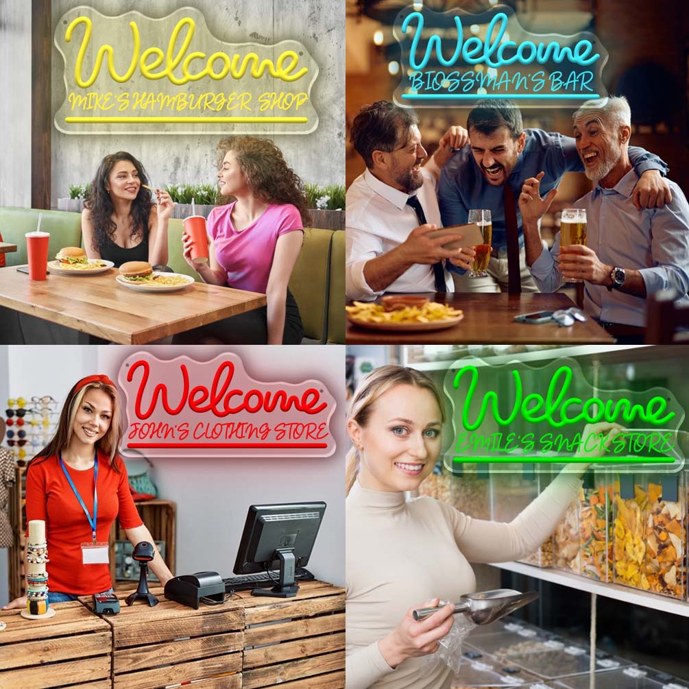 Custom welcome and name neon lights, 3D engraving, personalised LED neon lights for studio, college, restaurant, bar, party, living room and home decoration, ideal unique gift for bar, party, birthday gift, housewarming and more.
