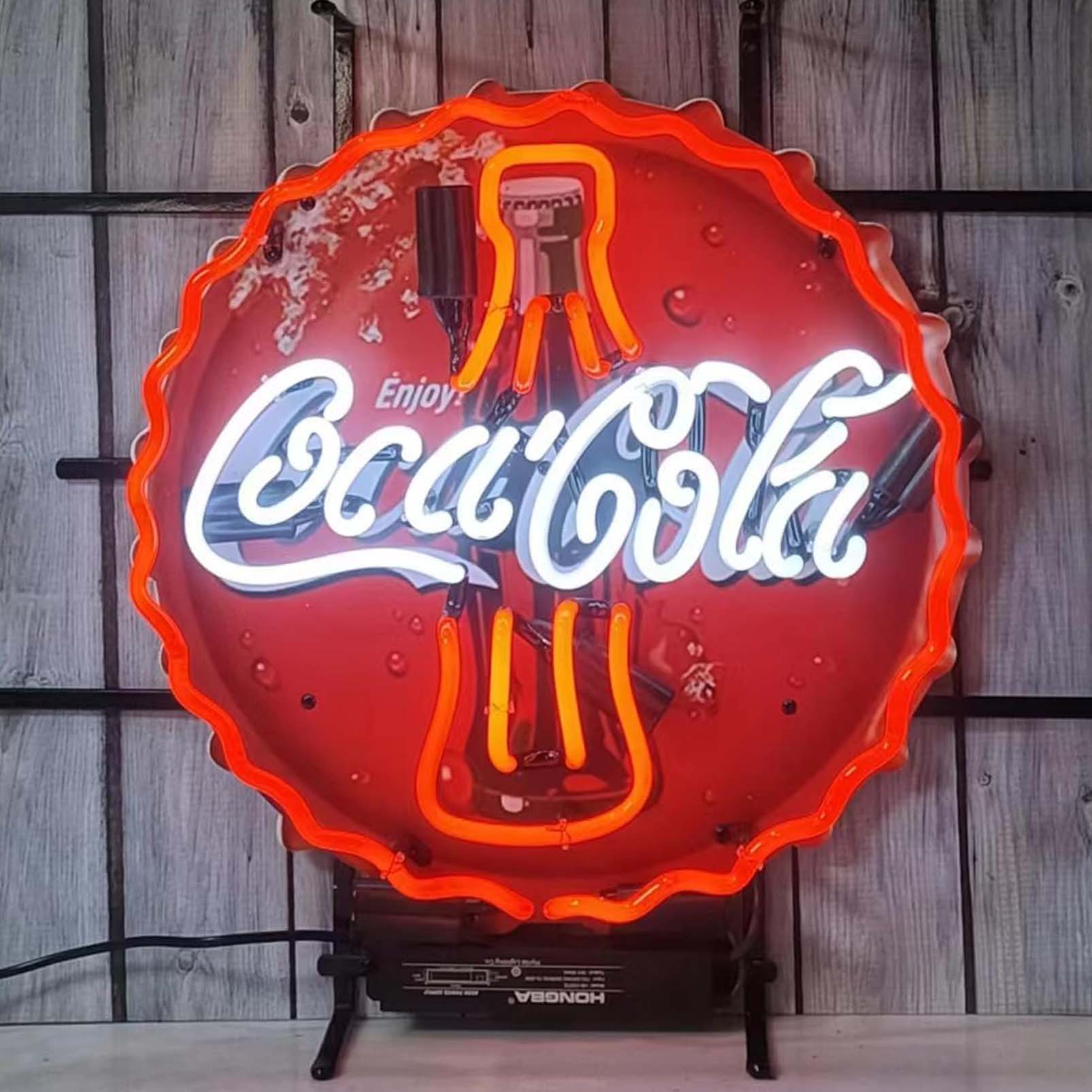 High Quality Super Bright Open Letter Display Coca Cola Bottle Sign, HD Jet Graphic Printed Board, Large Bright Illuminated Glass Tube Neon LED Sign for Office, Parties, Coffee Shops, Bars, Birthdays, Men’s Caves, Home and Event Wall Art Decoration.