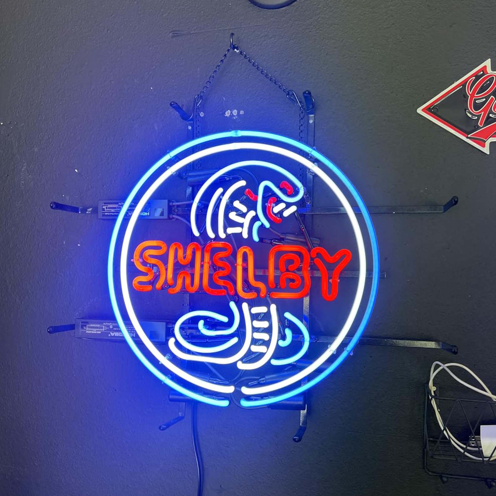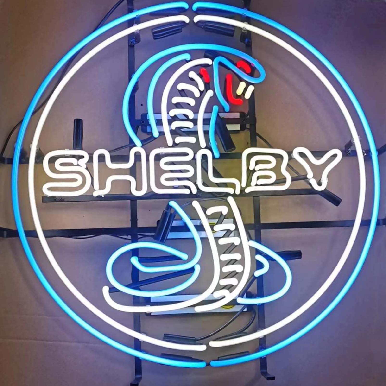 High Quality Super Bright Open Letter Display Shelby Cobra Round Sign, Large Bright Glowing Glass Tube Neon LED Sign for Office, Party, Coffee Shop, Bar, Birthday, Men’s Cave, Home and Event Wall Art Decoration.