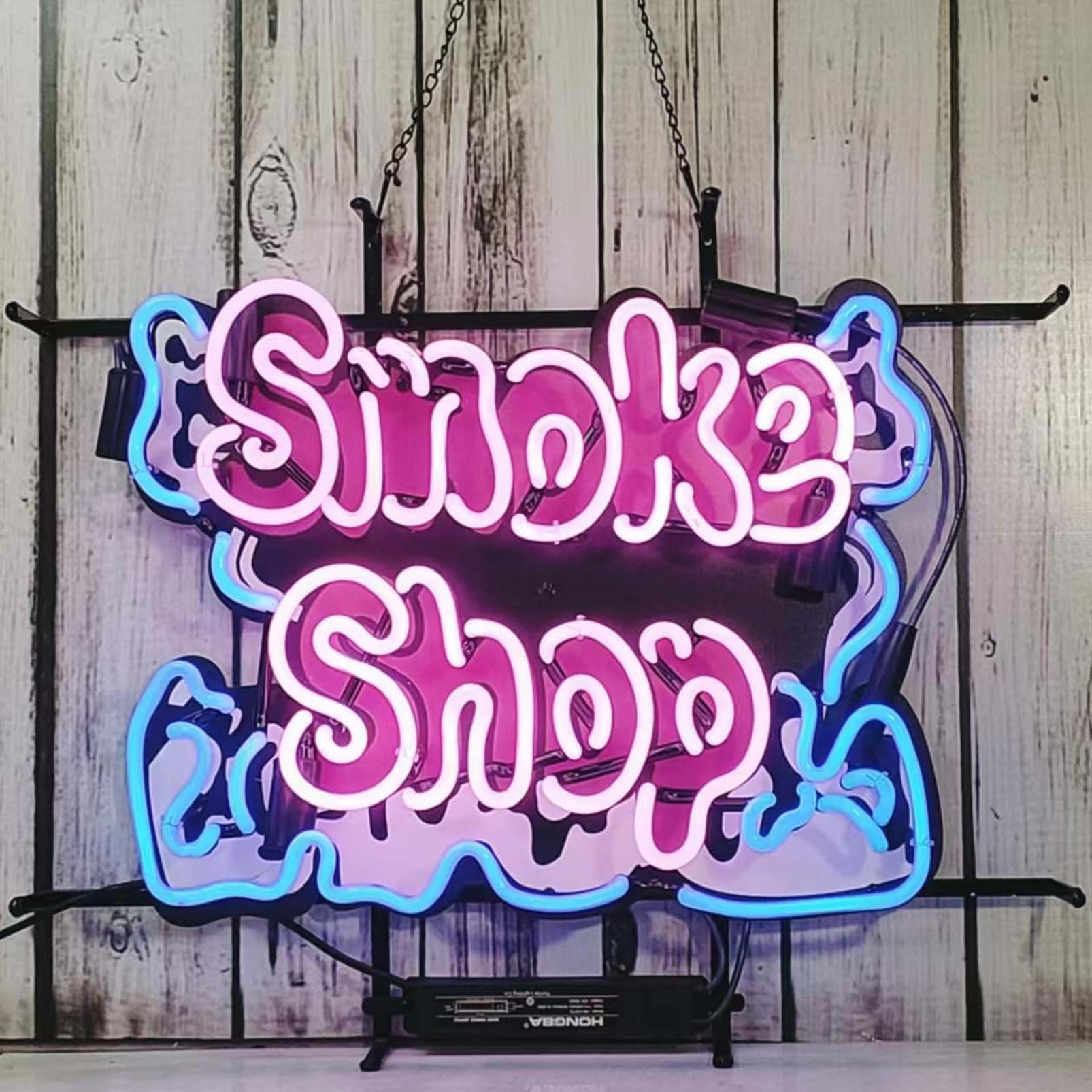 High Quality Super Bright Open Letter Display Smoke Shop Sign, HD Jet Graphic Printed Board, Large Bright Glowing Glass Tube Neon LED Sign for Office, Party, Coffee Shop, Bar, Birthday, Men’s Cave, Home and Event Wall Art Decoration.