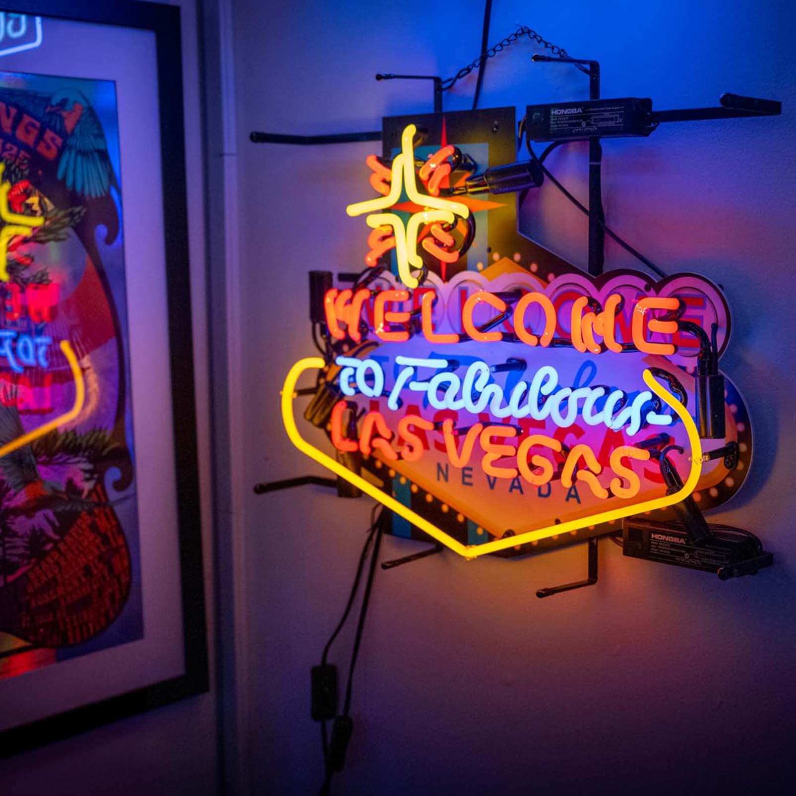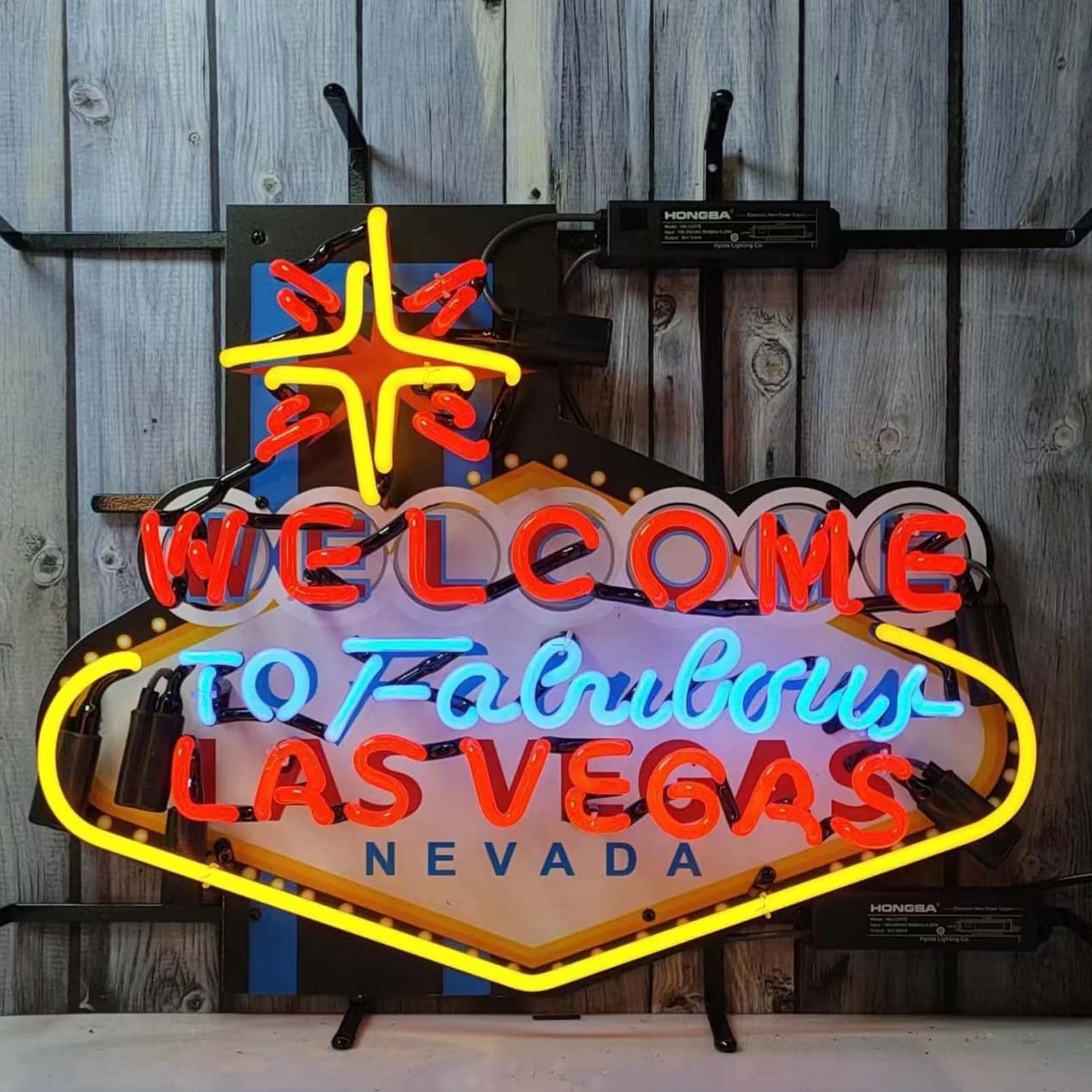 High Quality Super Bright Open Letter Display Welcome To Las Vegas, HD Jet Graphic Printed Board, Large Bright Glowing Glass Tube Neon LED Sign for Office, Party, Coffee Shop, Bar, Birthday, Men’s Cave, Home and Event Wall Art Decoration.