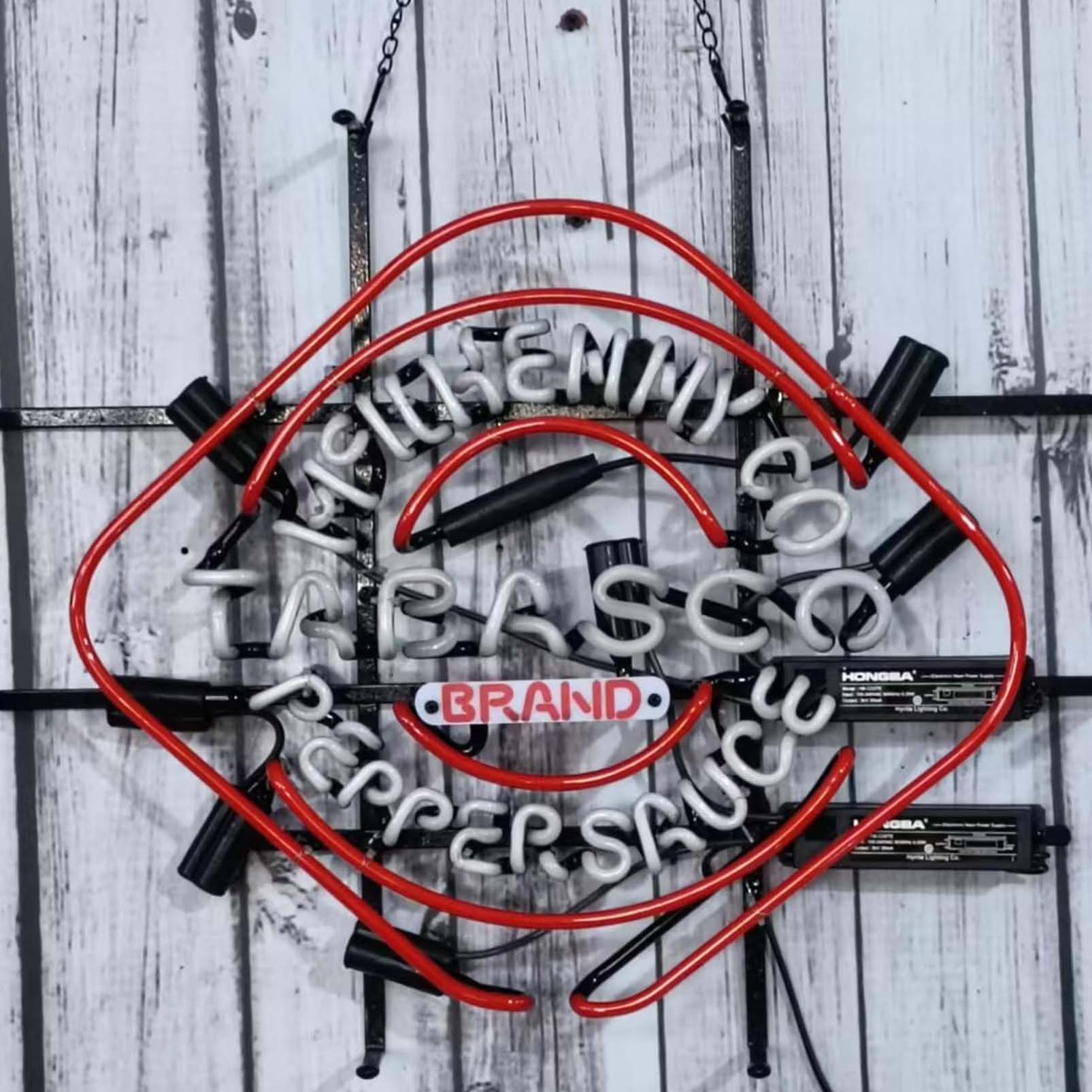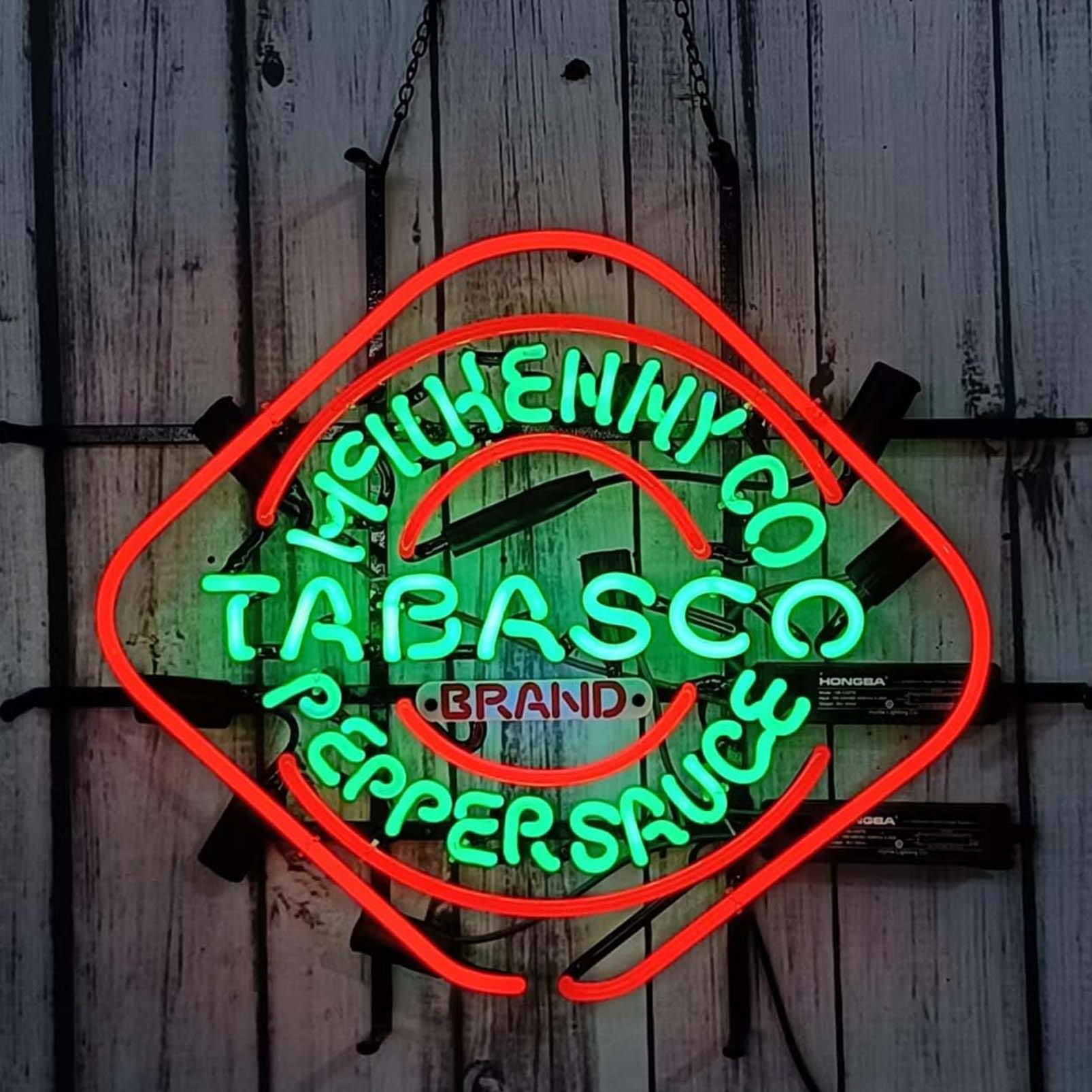 High quality super bright TABASCO sign with HD inkjet graphic printing board, large glowing glass tube neon LED sign for office, party, coffee shop, bar, birthday, man cave, home and event wall art decoration.