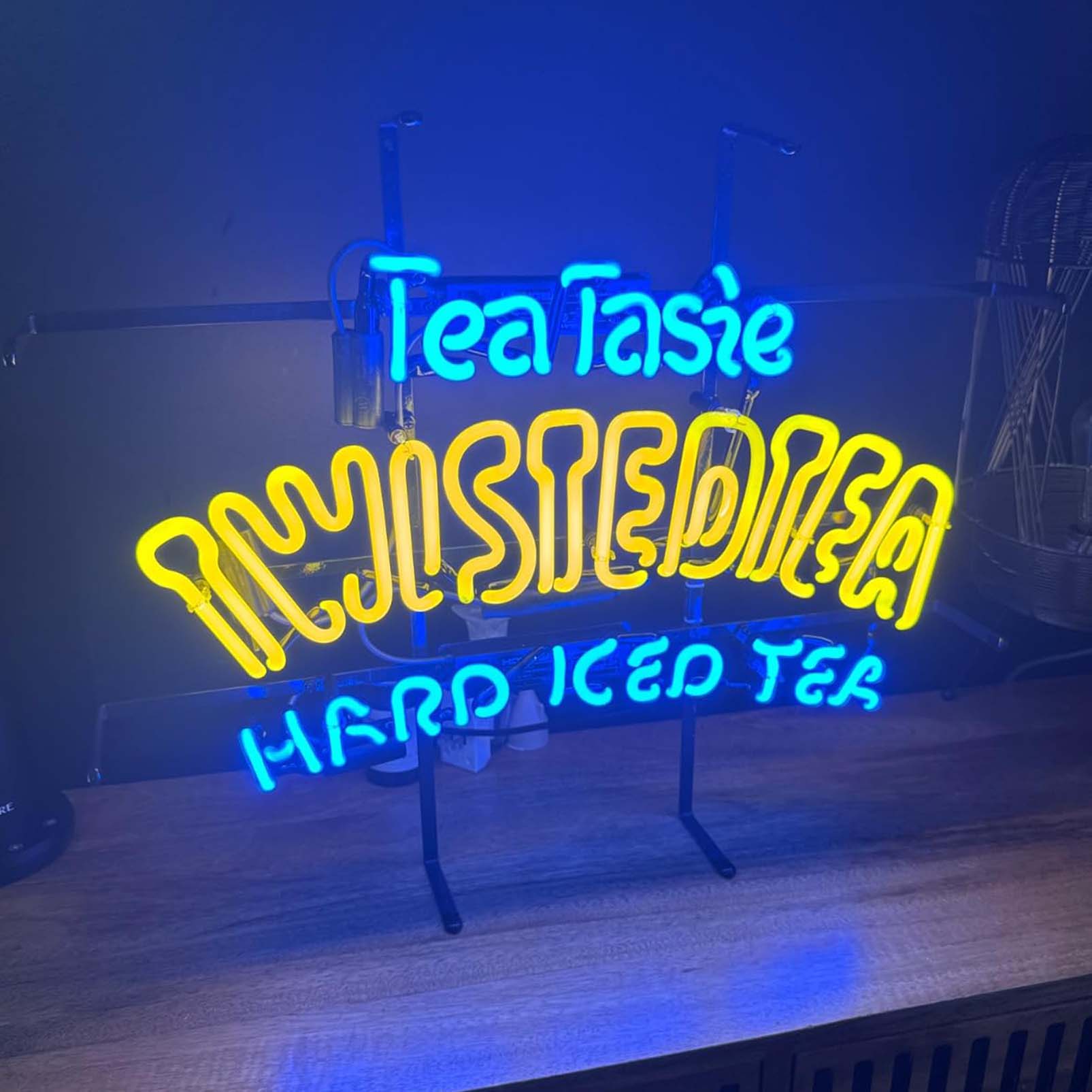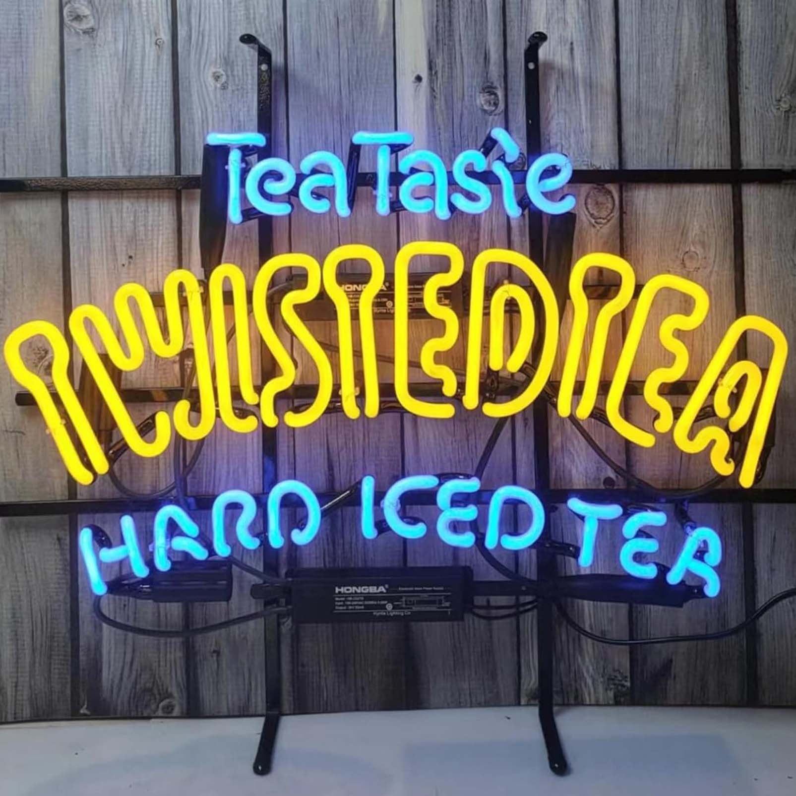 High quality super bright Tasie Twisted Tea sign, large glowing glass tube neon LED sign for office, party, coffee shop, bar, birthday, man cave, home and event wall art decoration.