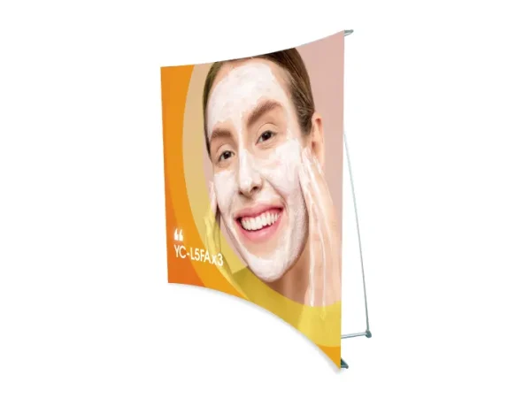These three stands can be used individually, in pairs, or as a group to create an 8ft backwall display. The top and bottom hardware of the L banner displays are equipped with magnets, allowing for easy connection when displayed side by side. This seamless integration transforms the three individual stands into a cohesive trade show backwall, which can be straight or curved. For convenient graphic installation, our L Banner Stand utilizes super-thin Velcro to connect the banner with the top rail. The lightweight frame can be set up in minutes, providing a portable and lightweight alternative to traditional trade show backwall displays. Enjoy a clean and edge-to-edge display with our L Banner Stand.