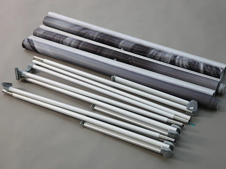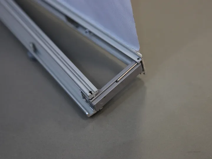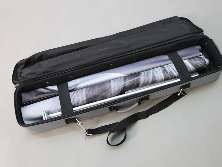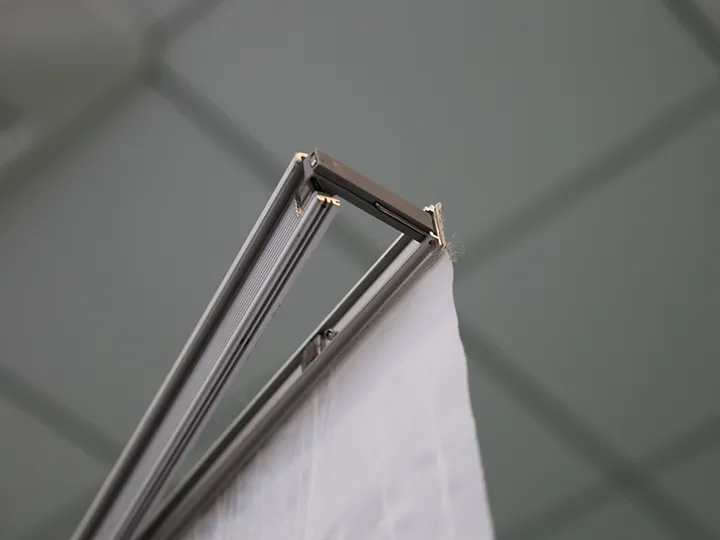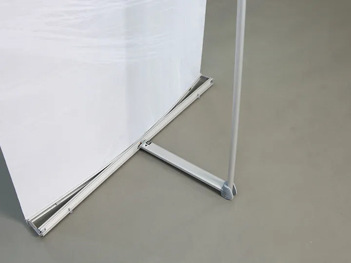 These three stands can be used individually, in pairs, or as a group to create an 8ft backwall display. The top and bottom hardware of the stands are equipped with magnets, allowing for easy connection when displayed side by side. This seamless integration transforms the three individual stands into a cohesive trade show backwall, which can be straight or curved. For convenient graphic installation, our L Banner Stand utilizes super-thin Velcro to connect the banner with the top rail. The lightweight frame can be set up in minutes, providing a portable and lightweight alternative to traditional trade show backwall displays. Enjoy a clean and edge-to-edge display with our L Banner Stand.