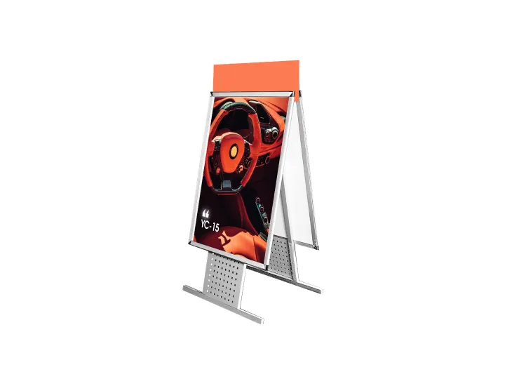 The Uptown A Frame is an incredibly versatile A-frame display that offers multiple display options. It is suitable for both indoor and outdoor use. The frame is constructed using high-grade aluminum with a sleek silver matte finish, providing durability and a professional look. The signboards are made from rigid PVC board, ensuring sturdiness. Swapping out signboards is a breeze, as the edges of the frame flip open, making the process quick and easy. Additionally, an accent panel can be conveniently slid into a slot on the side of the frame, while the rider panel effortlessly slides into a slot at the top of the frame. With its flexibility and user-friendly features, the Uptown A Frame is an excellent choice for showcasing your message or advertisement.